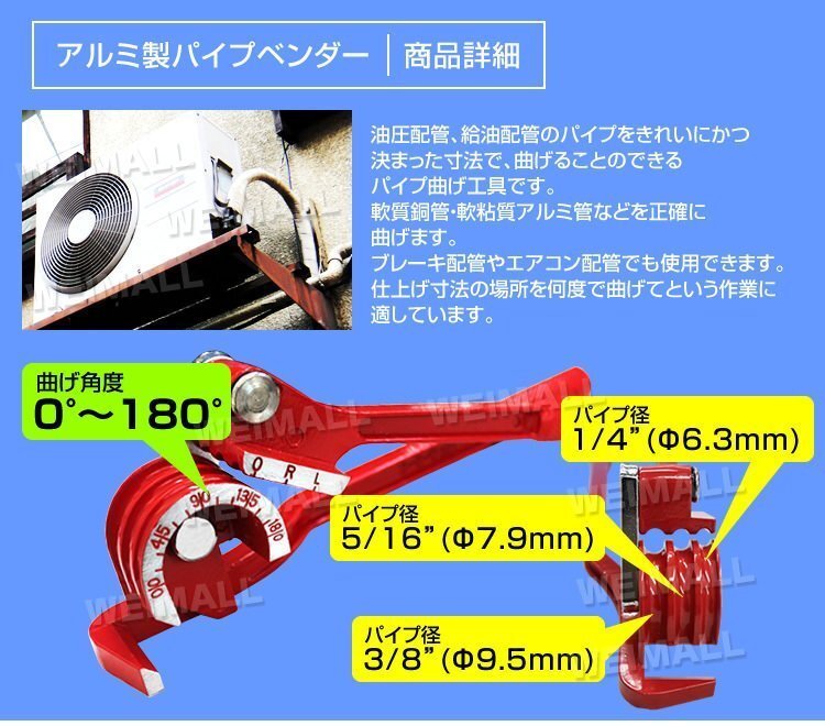| ■ アルミ製パイプペンダー 180度曲げ対応 1/4" 5/16" 3/8" [A21C] |