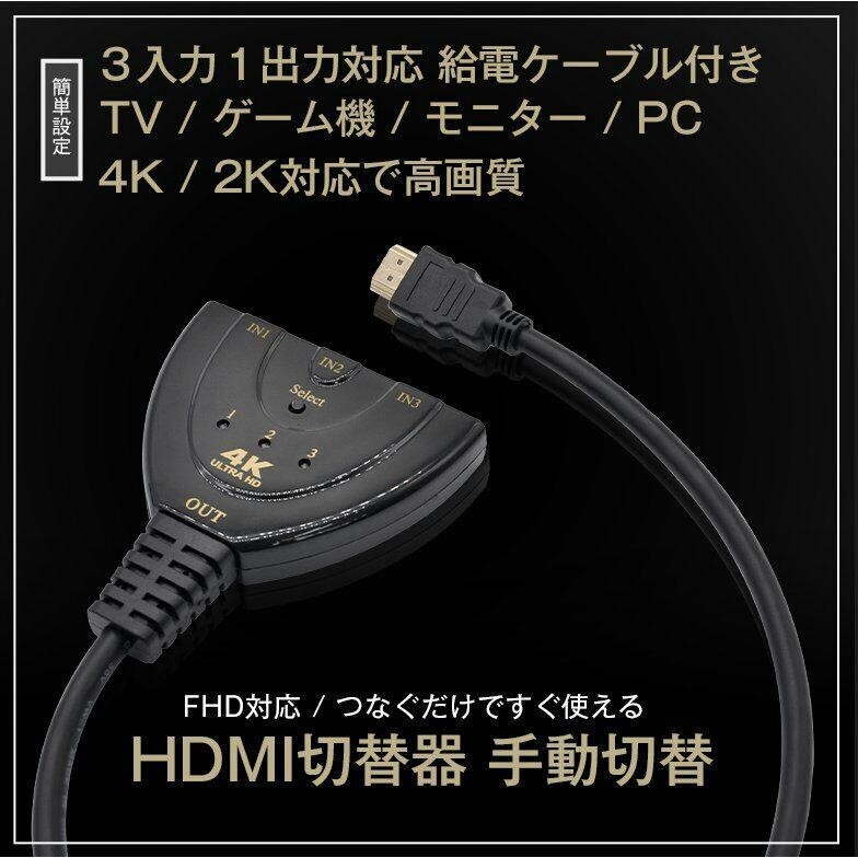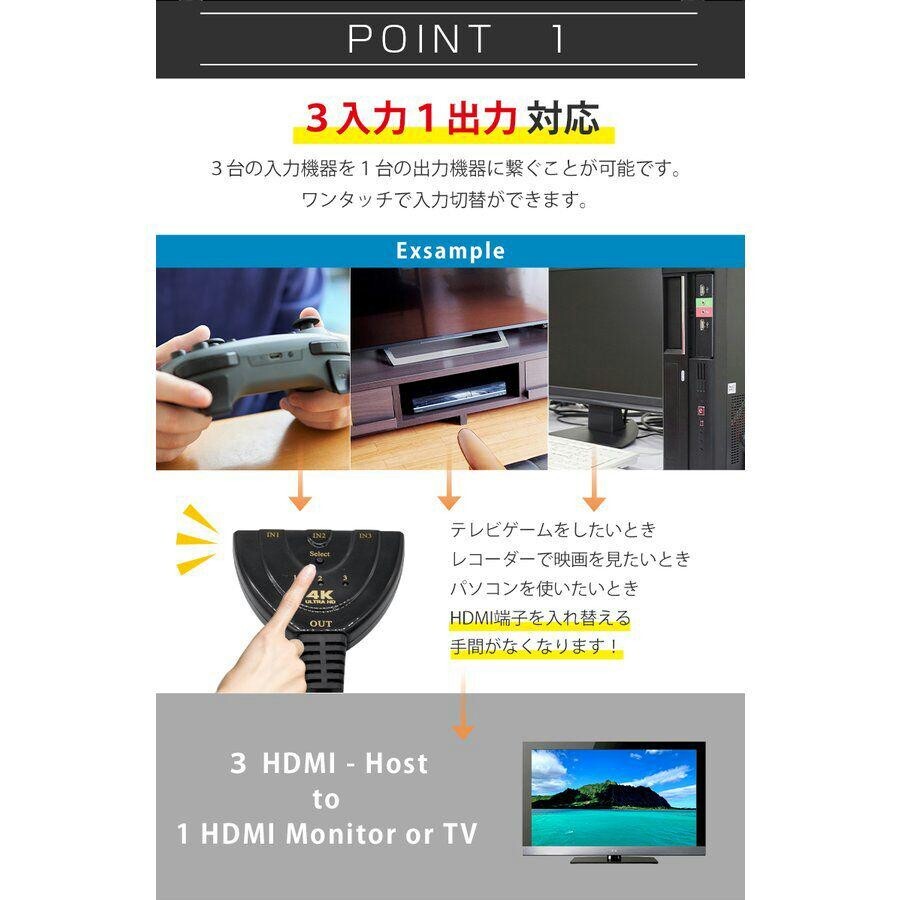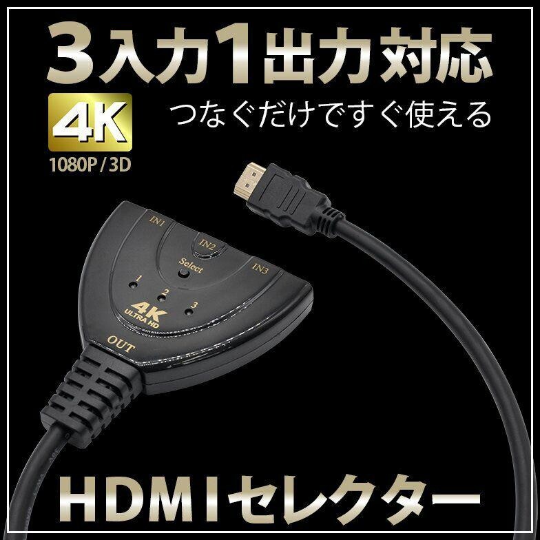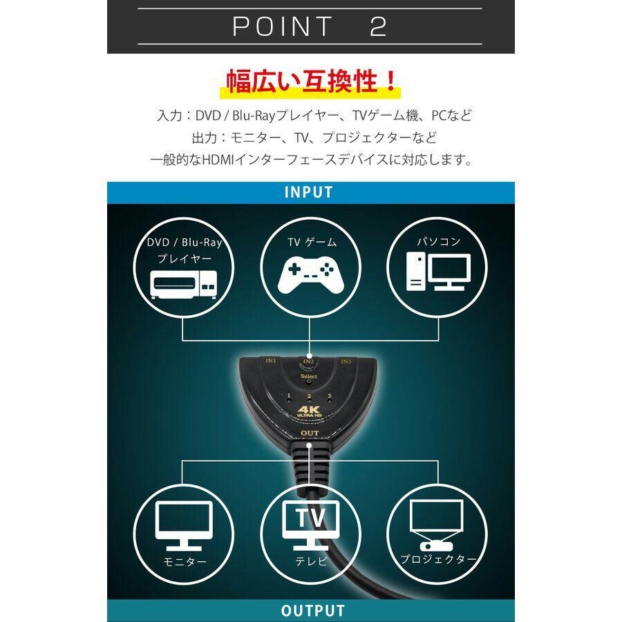 HDMI 分配器 切替器 セレクター ディスプレイ 3入力 1出力 4K 高画質