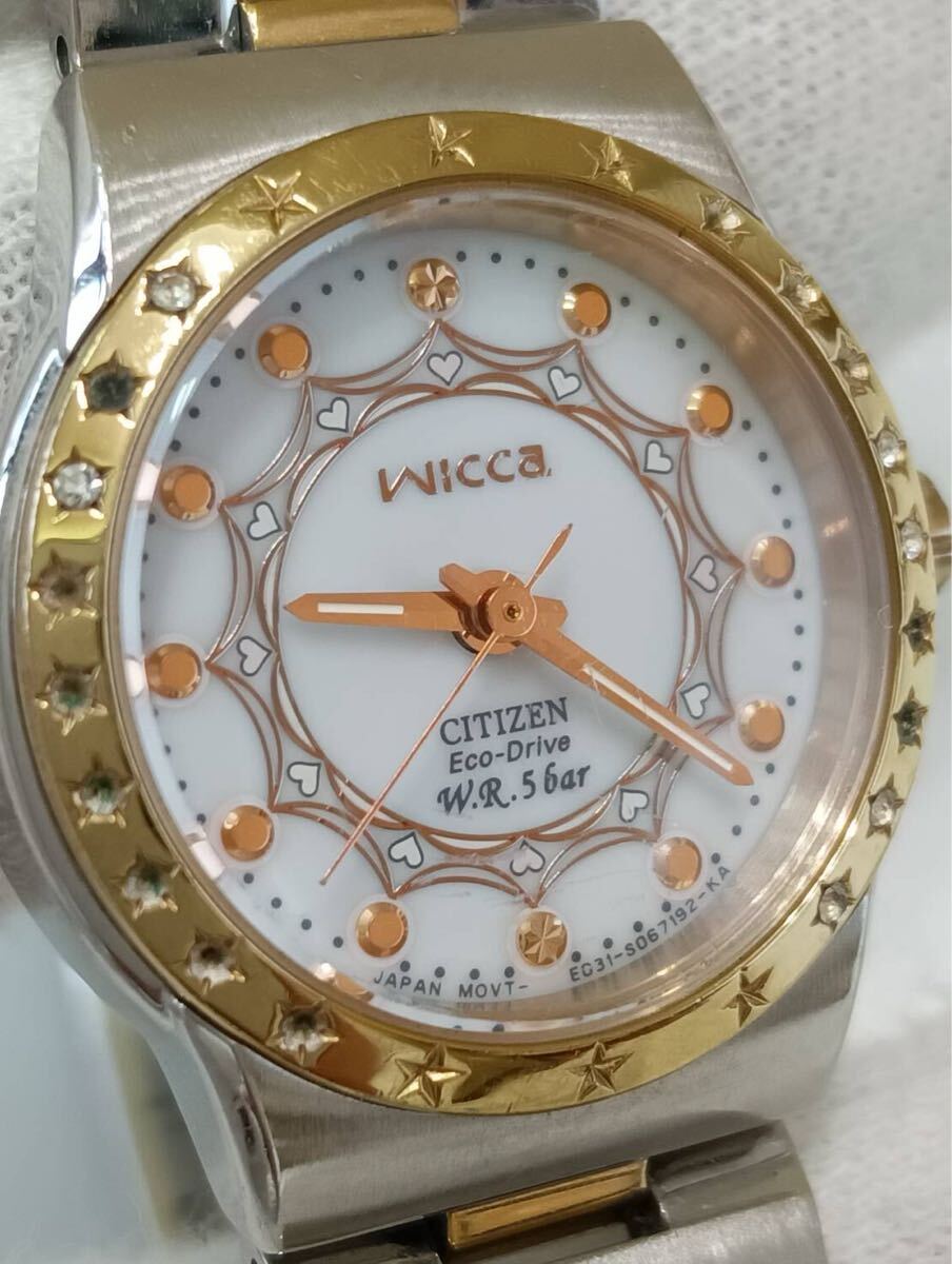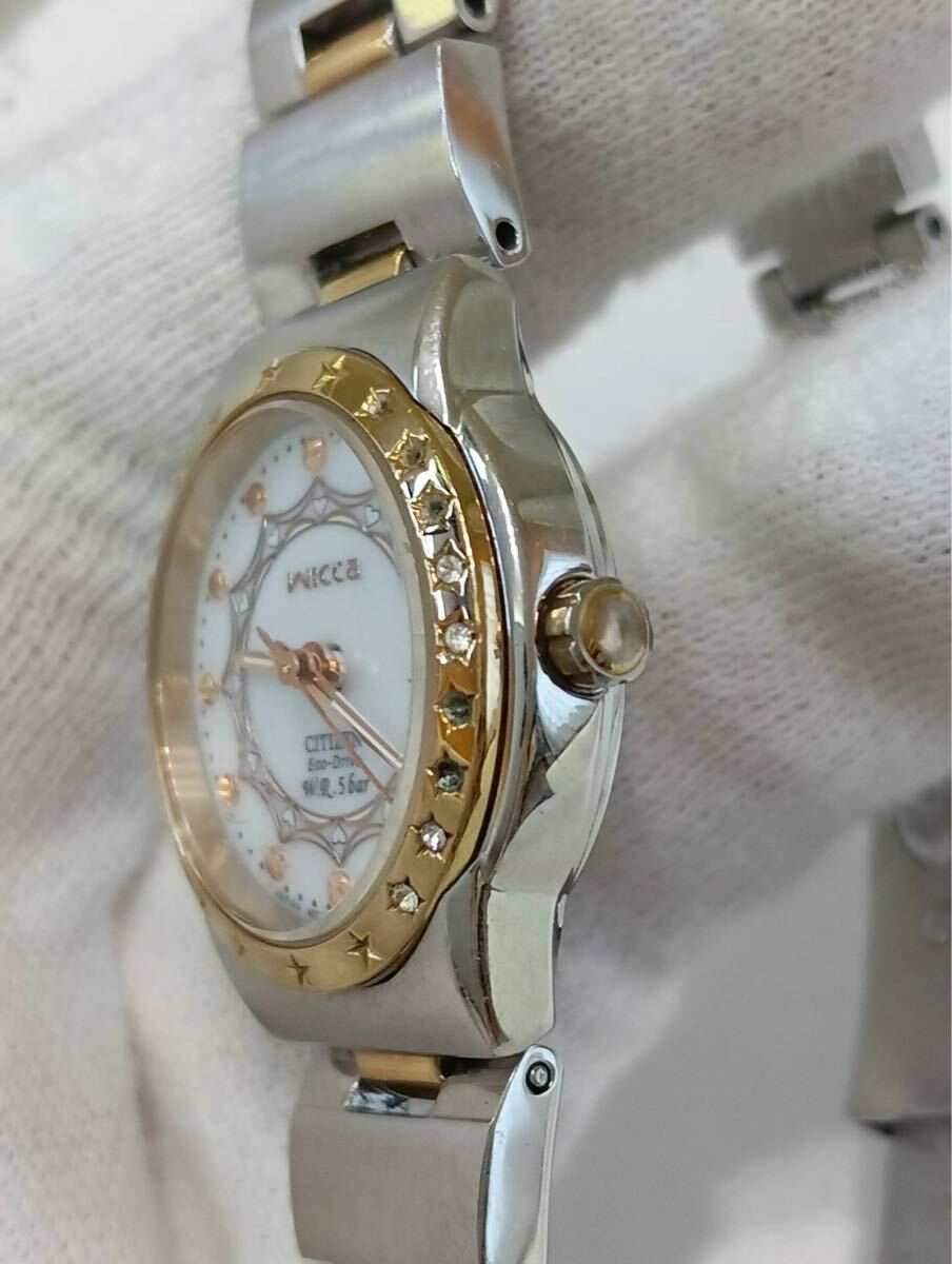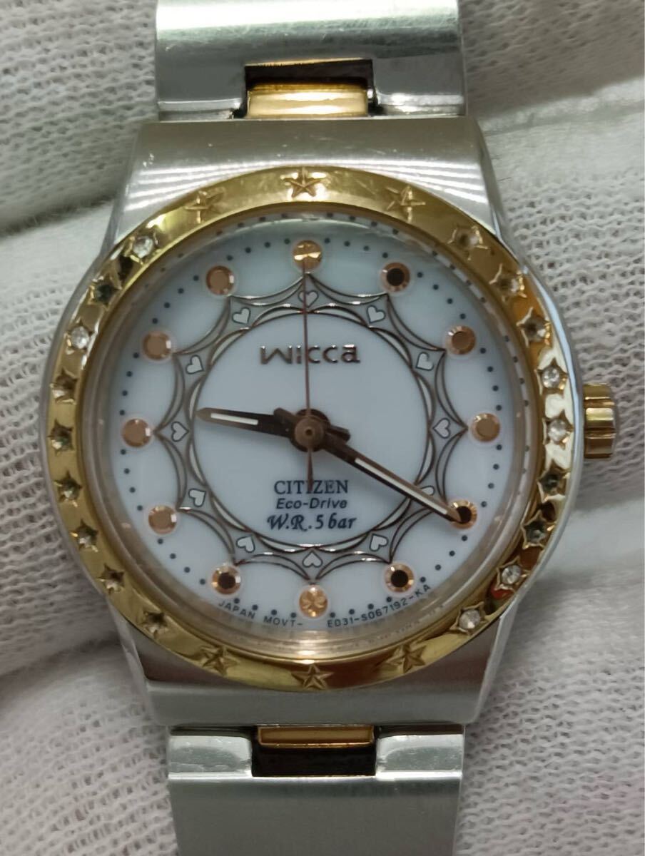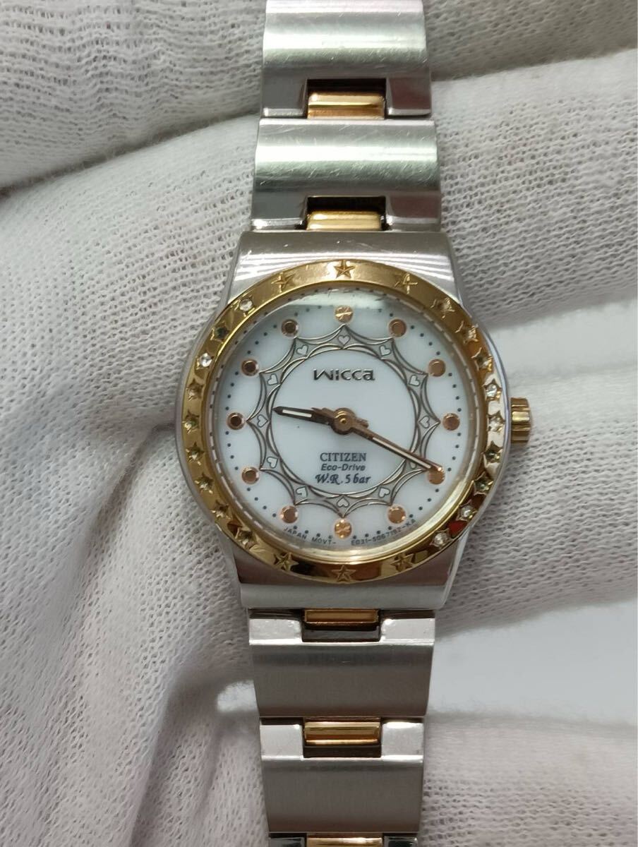 Wiccaウィッカ CITIZENシチズン Eco-Driveエコドライブ 腕時計 電波ソーラー E031-S040884 HST シルバー×ゴールド ステンレス 白文字盤 時計 現状品