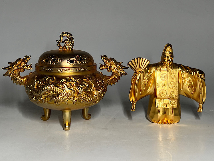 金属製 金色 龍彫香炉 と 翁 置物 2点 まとめて ◆商品詳細 寸法(約):11x15.3x6.6(高×幅x口径cm) 翁:9.5x9.5x5(高×幅×奥行cm) ※寸法に若干の誤差が生じる場合もございます。 汚れ、少し剥がれがありますので、 ご承知の上入札お願いします。 状態等画像にてご確認の上ご入札よろしくお願いいたします。 ◆発送先等のご連絡とお支払いについて ※発送先等のご連絡 落札時から48時間以内にお願い致します。 ※お支払 かんたん決済の期限内にお願い致します。 ※複数点落札時にまとめて取引の場合(72時間内)に、 まとめて取引の取引手順(落札者方の操作)を参考にお願い致します。 梱包したサイズを測って、地方によって送料を決めますので、よろしくお願いします。 ◆掲載画像について ※画像は現物を撮影しておりますが、照度、遮光、モニターによっては実物と 色目が異なって見えることがありますのでご注意ください。掲載画像では確認 できない傷や汚れがある可能性もございます、あくまで 中古品であるということをご承知の上、御入札をお願い致します。 ◆補償について 商品到着後はすぐに状態の確認をお願い致します。 商品の破損等がございまし たら、箱や梱包材など全てそのままの状態で保存し、お早めにご連絡ください。 (到着日から一週間以上経過、梱包材の廃棄済み等の場合、保証は致しかねます のでご注意ください。) ◆返品について 思っていたイメージと違う、などのお客様主観による返品はお受けできません ので、予めご了承ください。ノークレーム、ノーリターンでお願いします。届 いた商品が商品説明と著しく異なる場合(寸法、キズ記載ミスなど)のみ承り ます。早めにご連絡ください。 ◆注意事項 当方の希望価格と隔たりがある場合は、終了前にやむなく取下げさせて頂く場 合がございます。 ※商品ご落札翌日から4日間以内にご連絡が取れない場合は、入札取消の処置を 取らさせていただく場合がございます。 ※評価の悪い方は取り消す場合がございます。 ※原則として当方の不備以外のキャンセル・返品・返金は受け付けておりません。 以上の点を予めご了承頂いた上で、入札・落札お願い致します。 ◆発送方法 ▼ゆうパック(補償あり/追跡あり) 梱包後のサイズ:~約60cm ※送料全国一律880円 (但し北海道、沖縄、離島は+500円いただきます。) 発送元は静岡県となります。 ( 商品の組み合わせによっては同梱をお断りさせていただく場合があります。) ※大型商品について 郵便局の規定を超える商品の場合は、佐川急便またはヤマトでの発送となります。 |