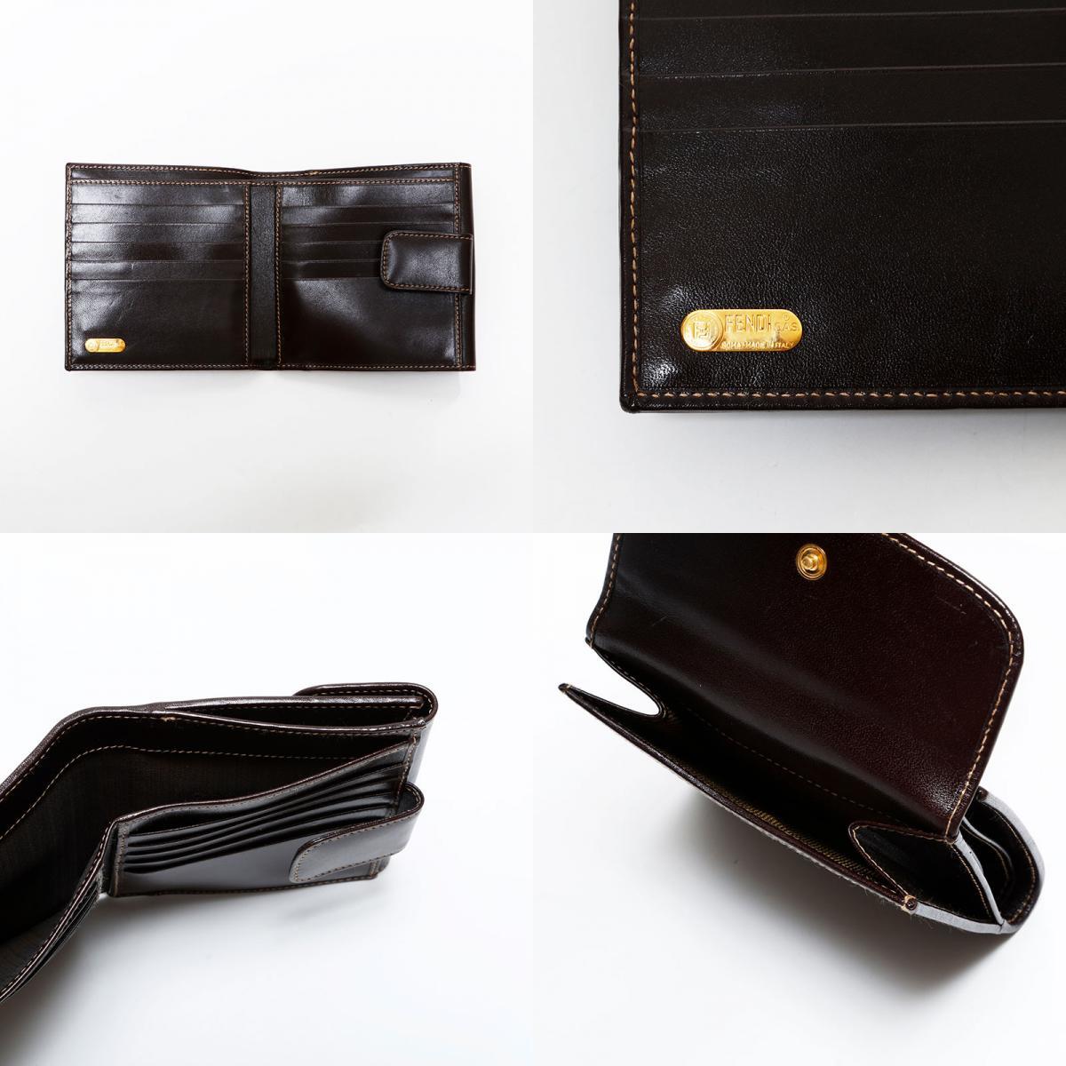 極美品 FENDI ズッカ キャンバス 二つ折り財布 ブラウン