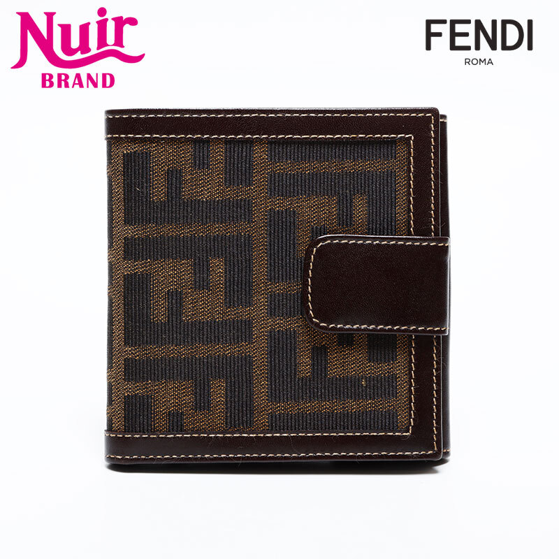 フェンディ FENDI 二つ折り財布 ズッカ キャンバス ブラウン