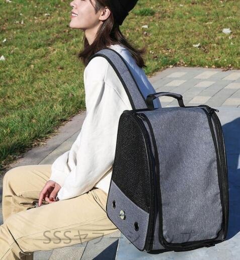 人気品鳥キャリーケージ シャッター式 スタンドパーチ/カップ付高い通気性遠距離のお出かけ両側メッシュ通気携帯便利 44x32x27cm (グレー)