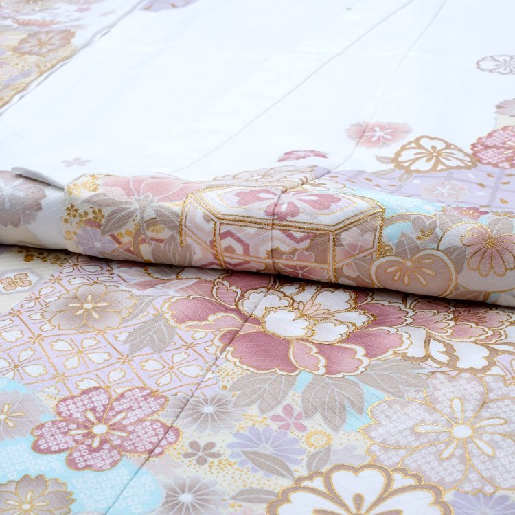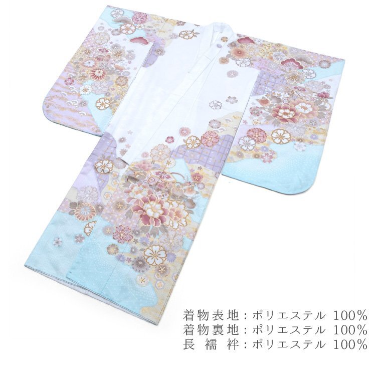 | 素材 | 着物:ポリエステル 100% (裏地)ポリエステル 100% 長襦袢 : ポリエステル 100% |
