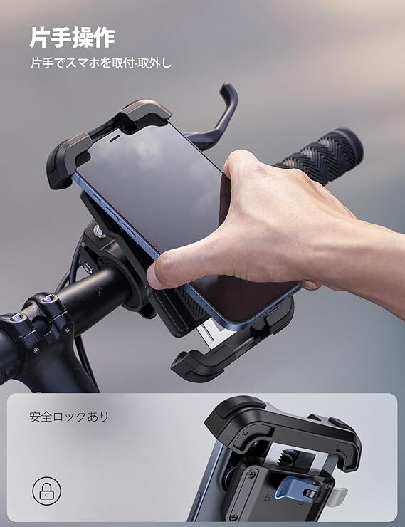 Amazon | Lamicall 片手操作 自転車 スマホ ホルダー スタンド : 簡単取付 スマホ自転車ホルダー ロードバイク スマホホルダー クロスバイク用 携帯置き 携帯ホルダー 落下防止 360度回転 振動吸収 iPhone 17 17pro Air iPhone16 16Plus 16pro 15/14/13/12/11 plus pro max android 4.7-6.8インチ に対応
