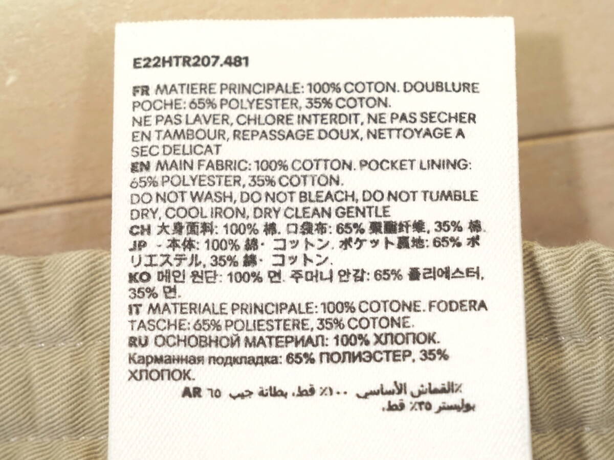 素材 コットン100%、ポケット裏地:ポリエステル65%コットン35%