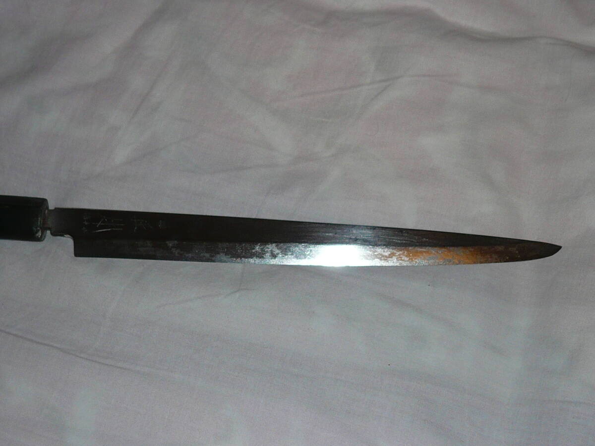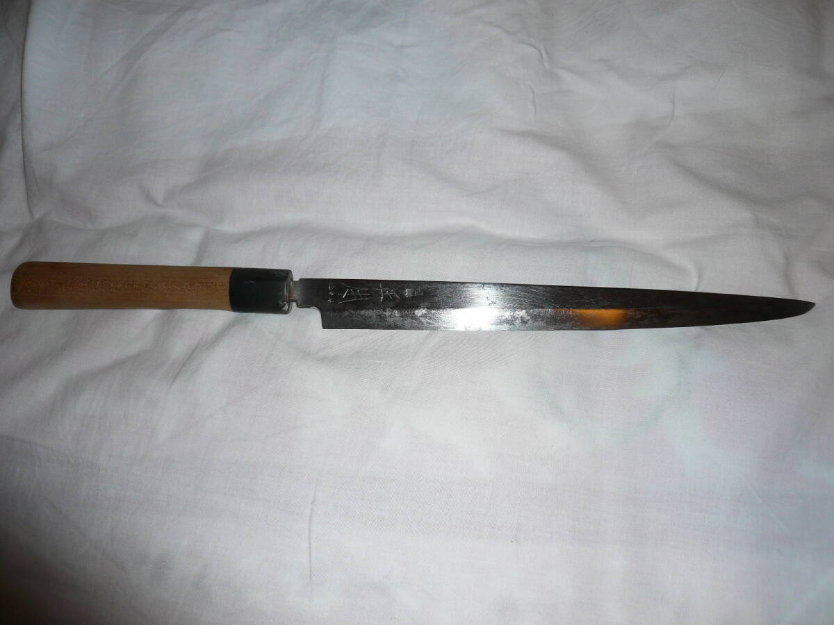 正本 刺身包丁 鋼 全長41cm 刃長 26cm 重量 200g 刃幅 2.8cm 中古 見た目では大きな刃こぼれはありません