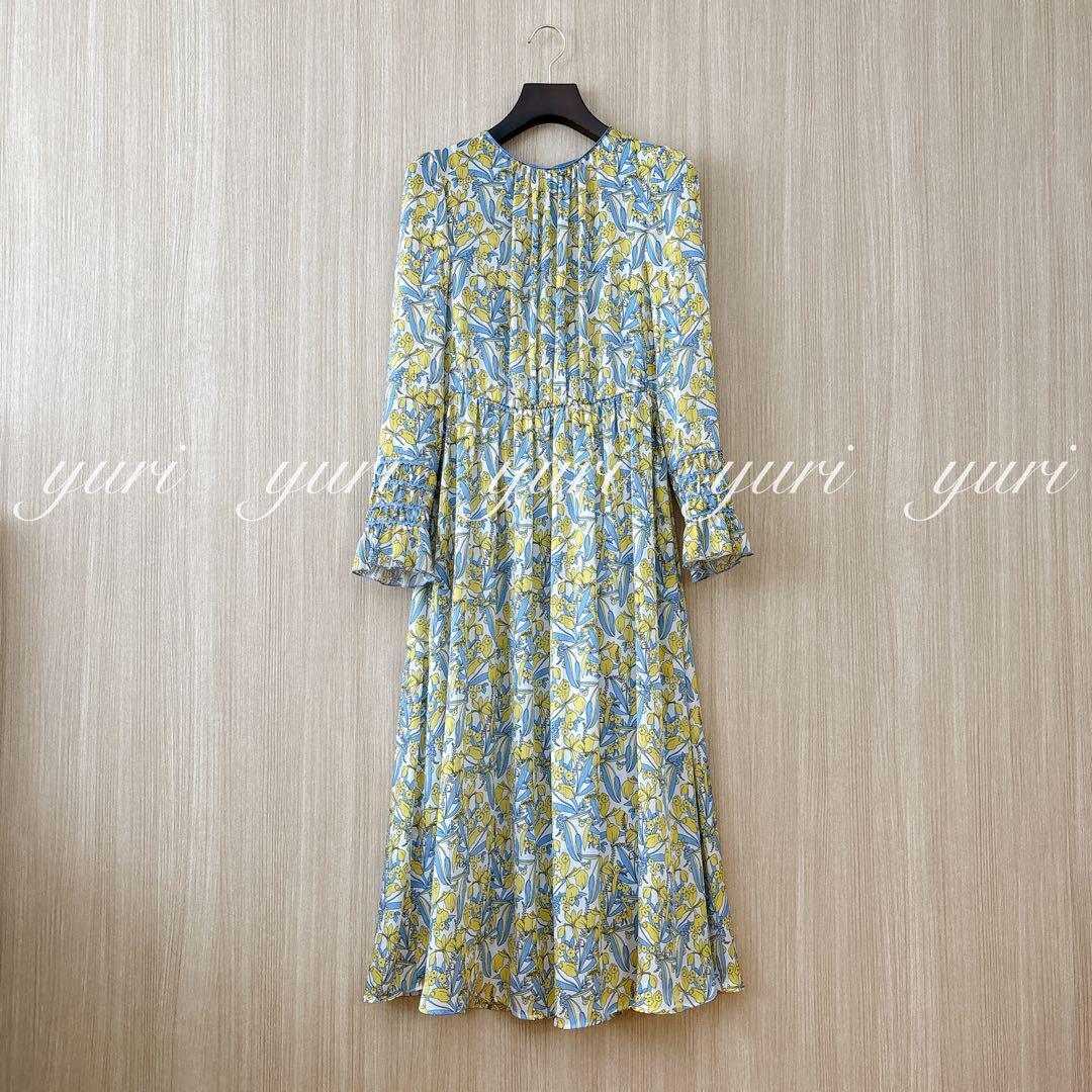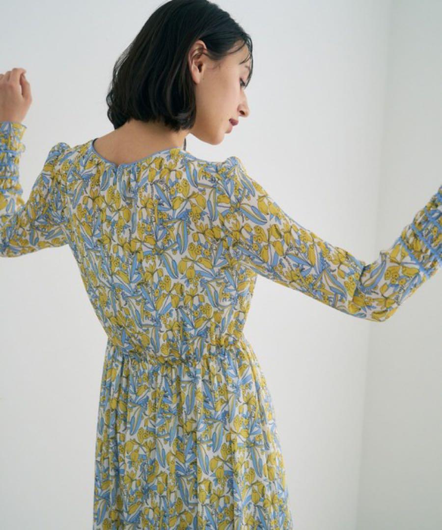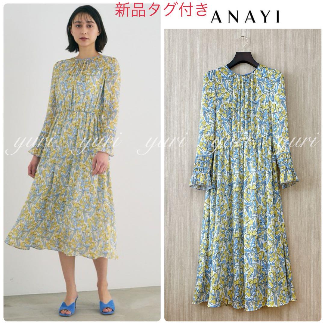 【395】新品 アナイ シルエットミニフラワープリントフレア ワンピース 黄色