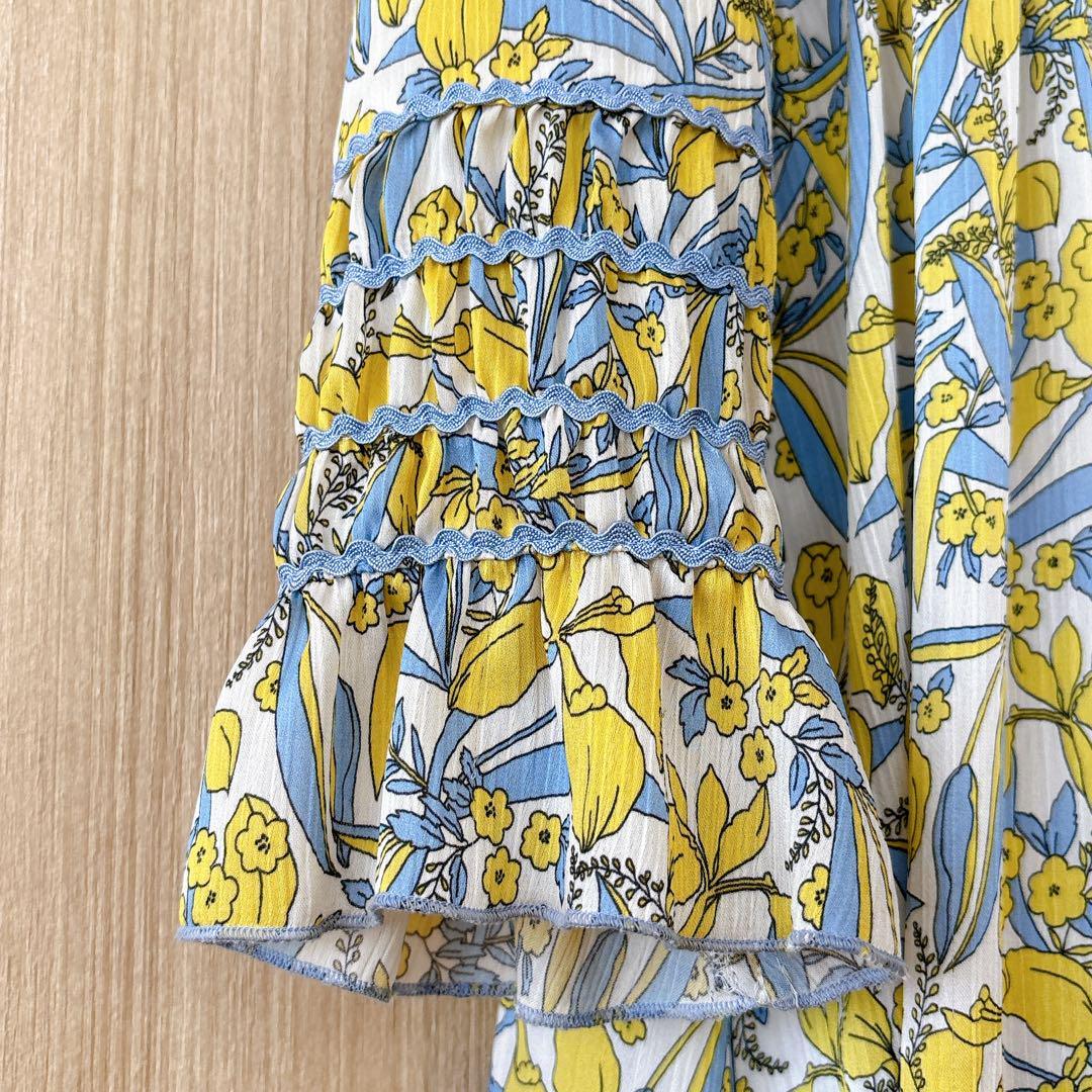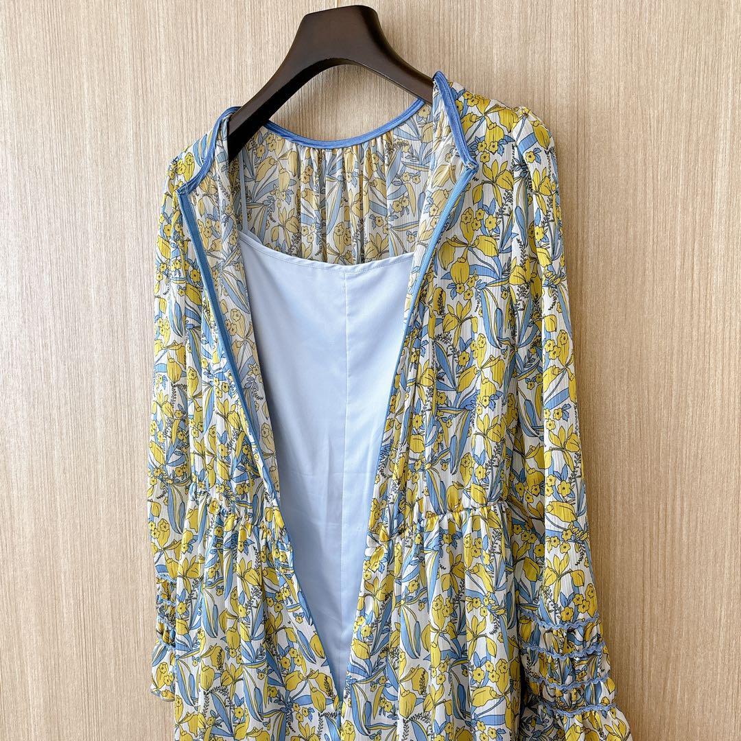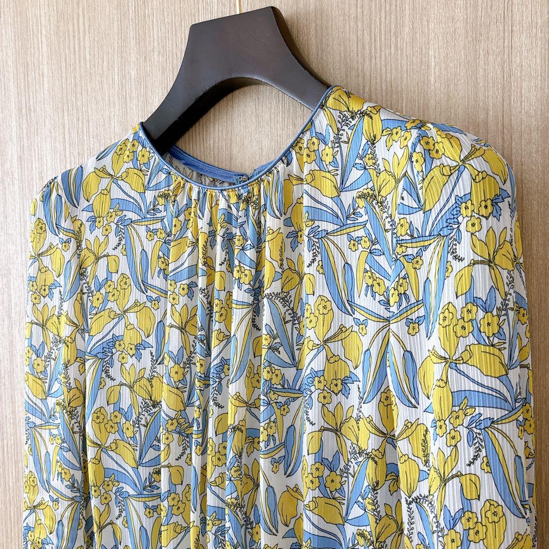 【395】新品 アナイ シルエットミニフラワープリントフレア ワンピース 黄色