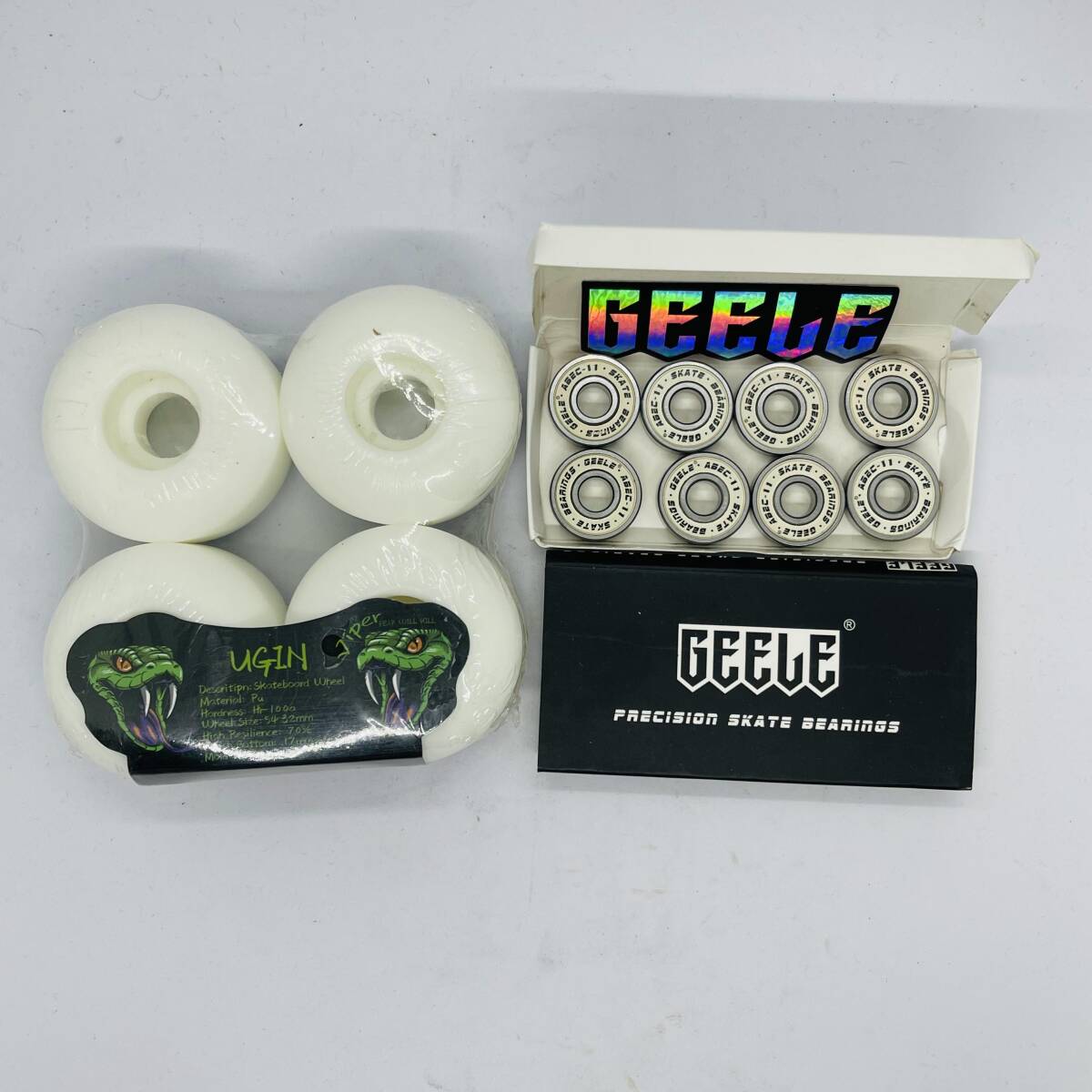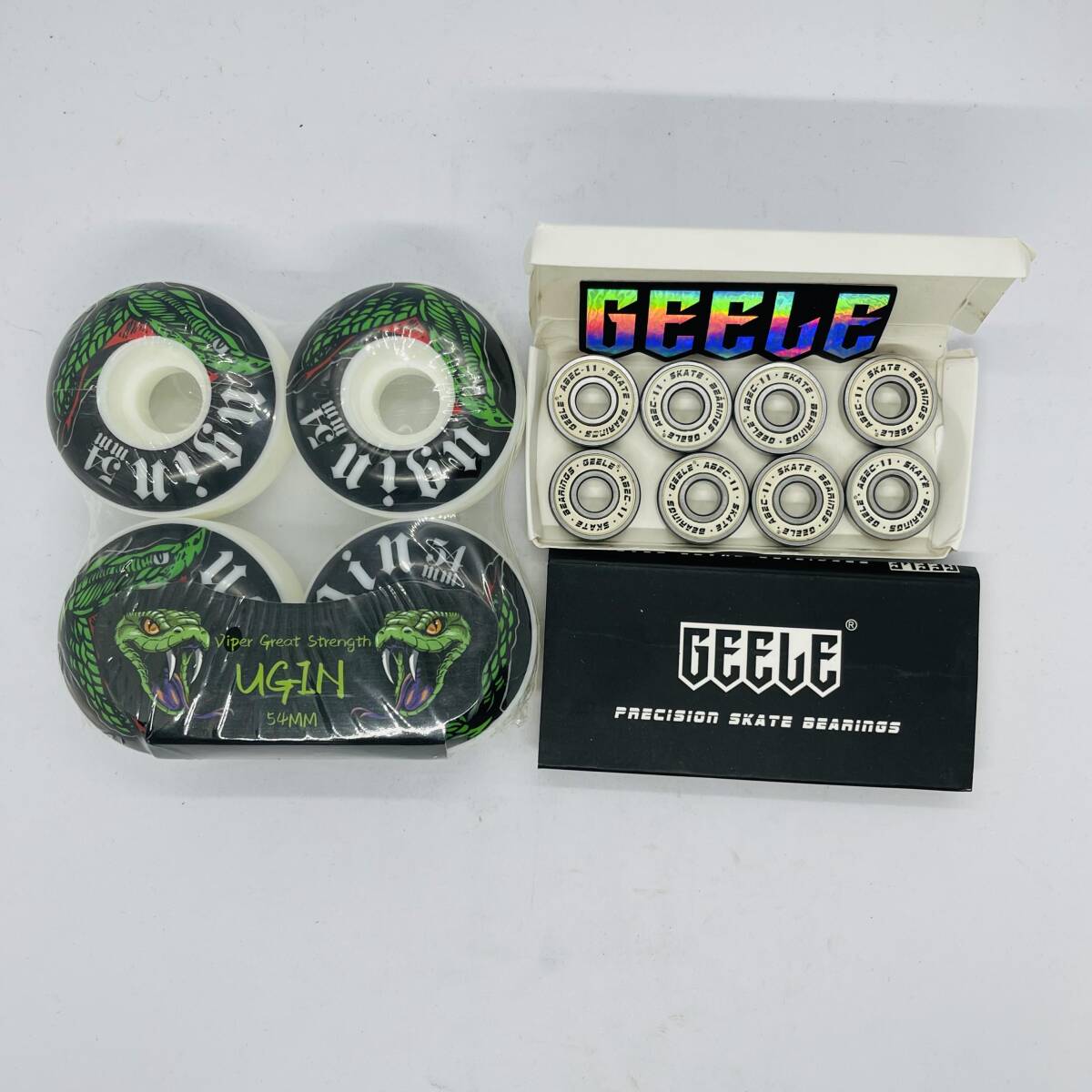 お得セット UGIN スケートボード 100A 54*32mmハードウィール+ABEC11ベアリングセット 蛇