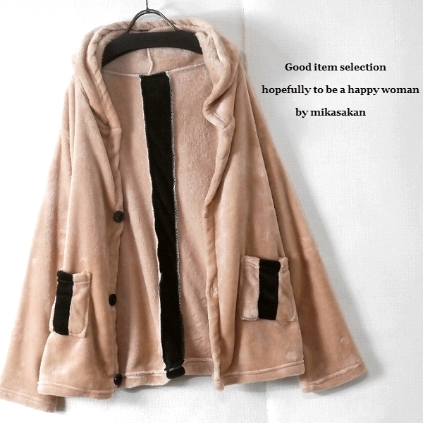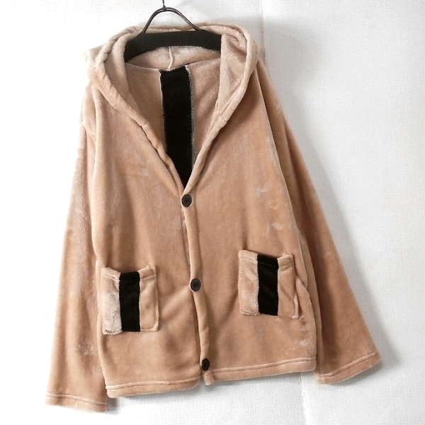 【未使用・アウトレット】起毛フード付きルームジャケット/ルームウェア/もこもこ/柔らかい/ベージュ | ||||