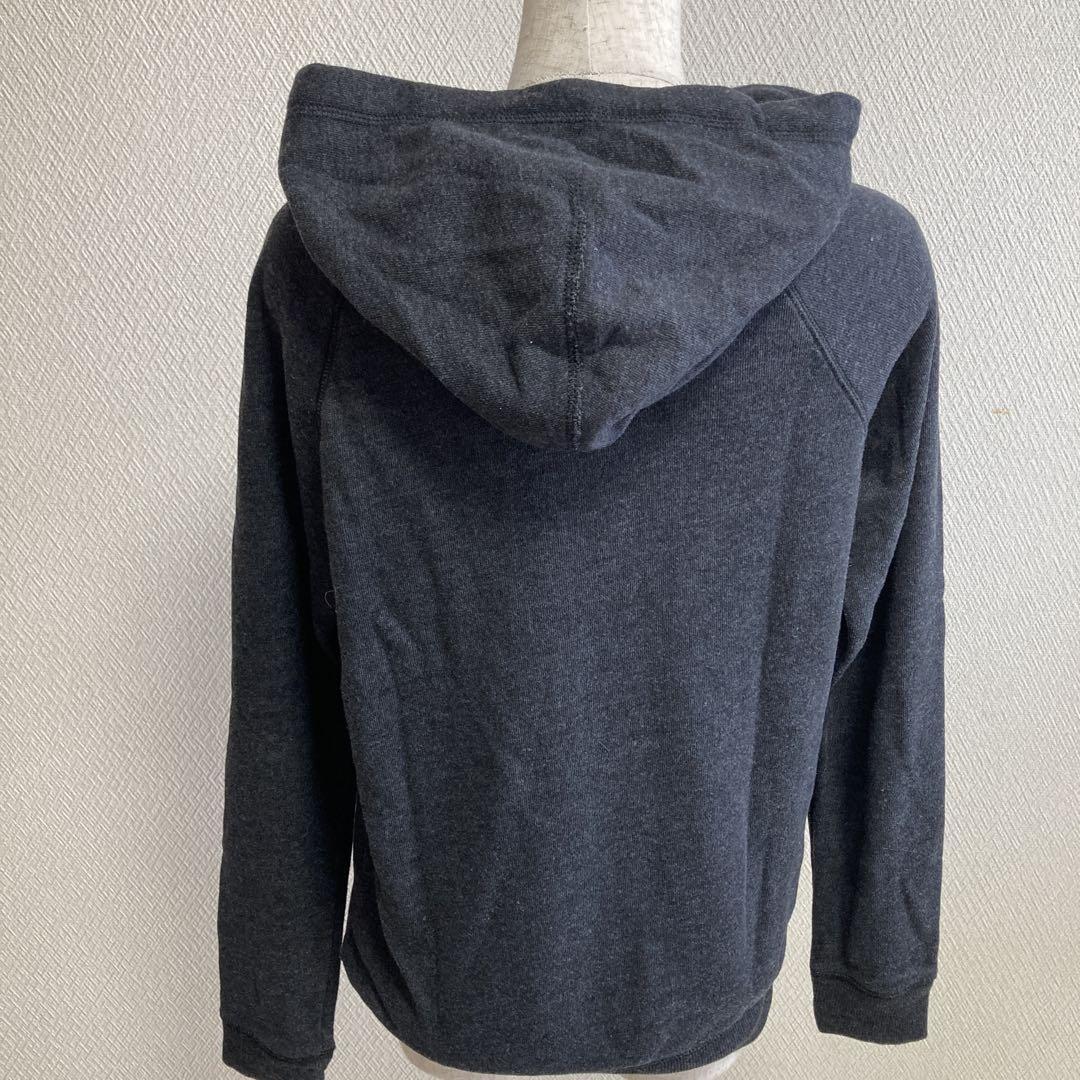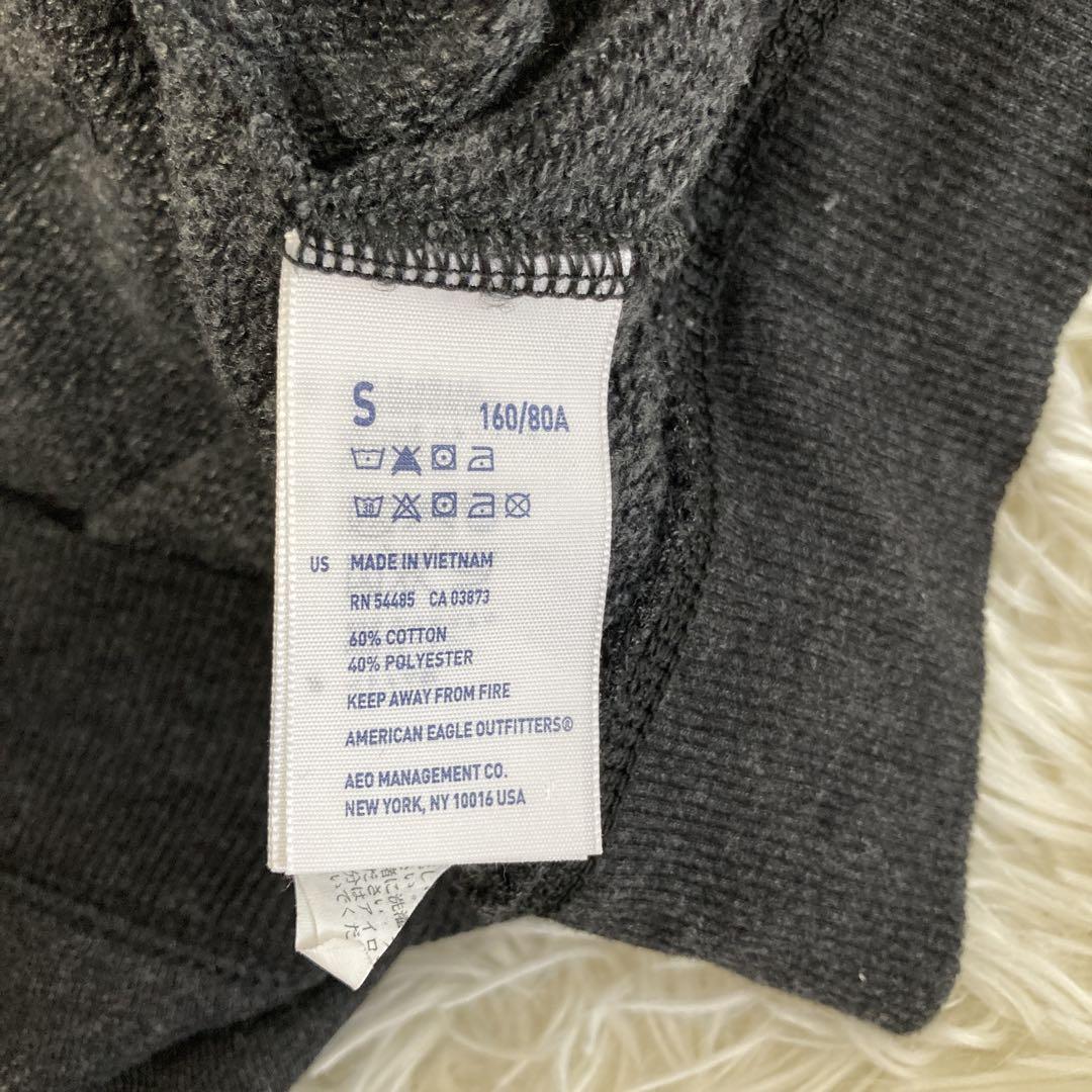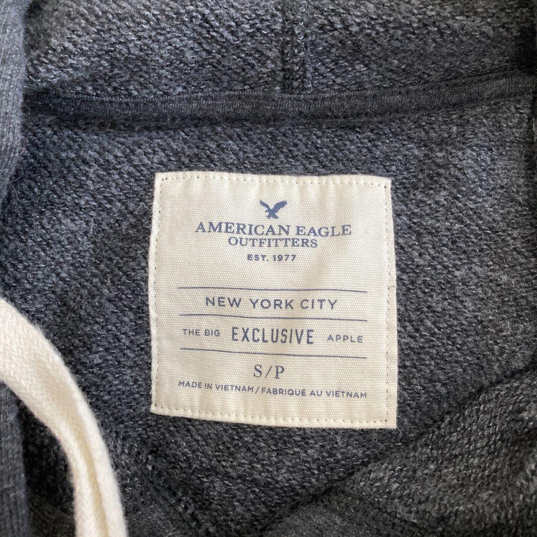 AMERICAN EAGLEのダークグレーのフード付きパーカー、NYCグラフィックプリントデザイン。