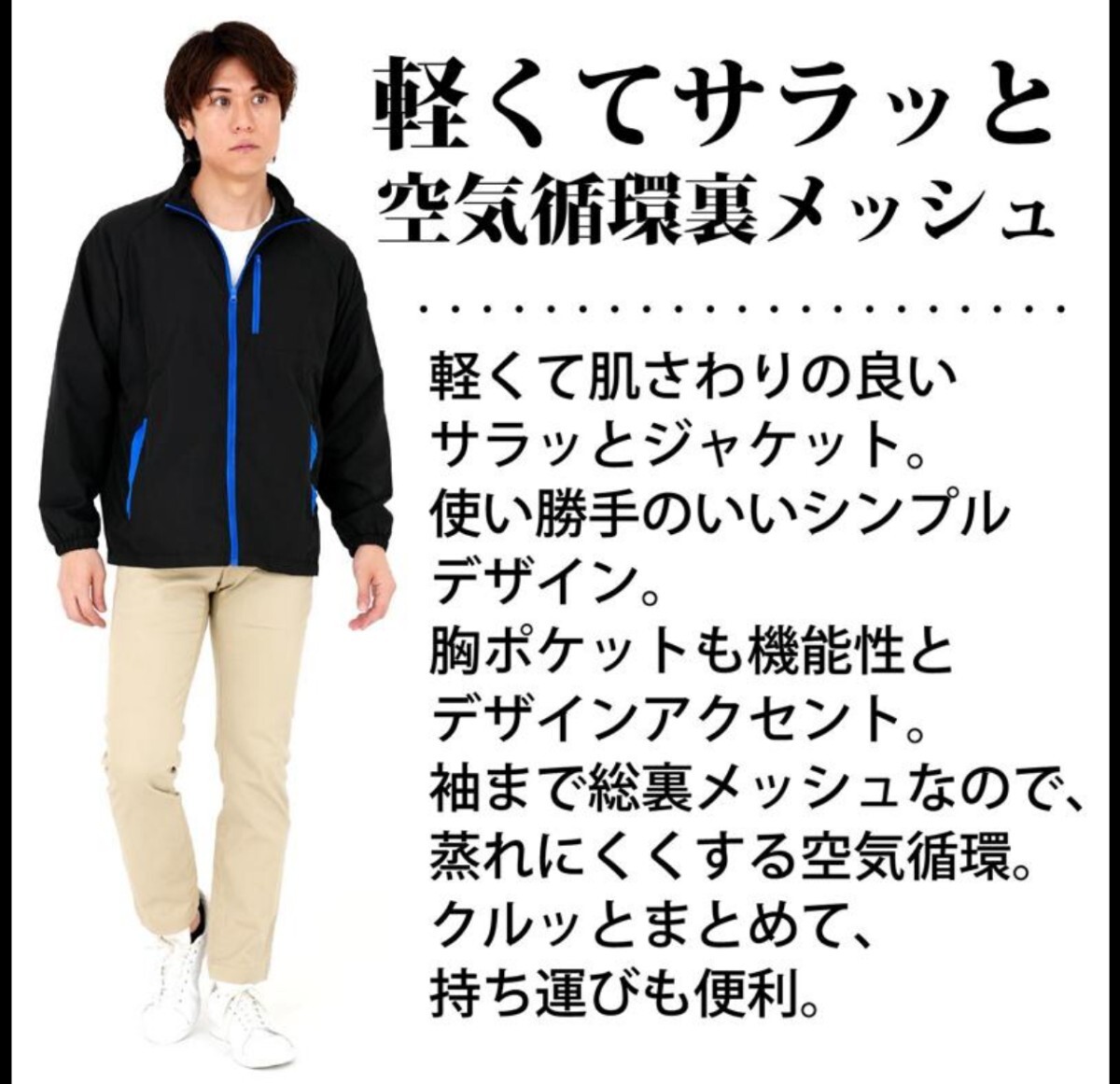 ウィンドブレーカー 裏メッシュ ファッション アウター ユニフォーム イベント 軽量 薄手 持ち歩き ポケット付き 裏メッシュジャケット