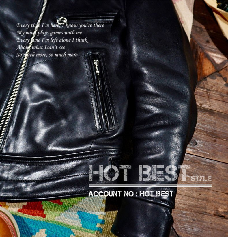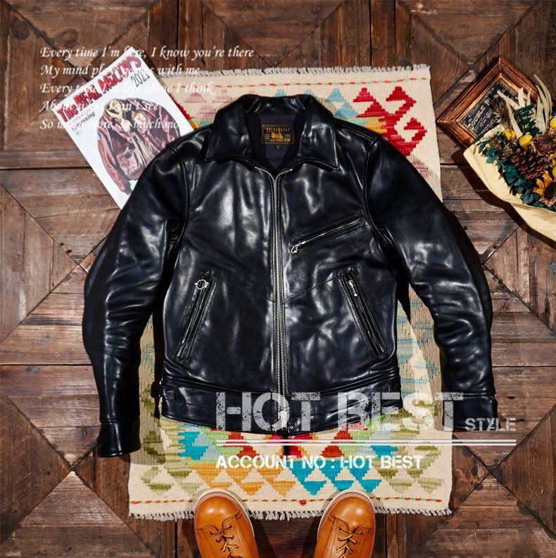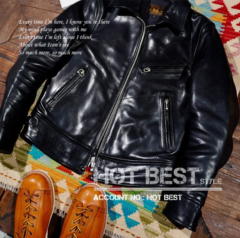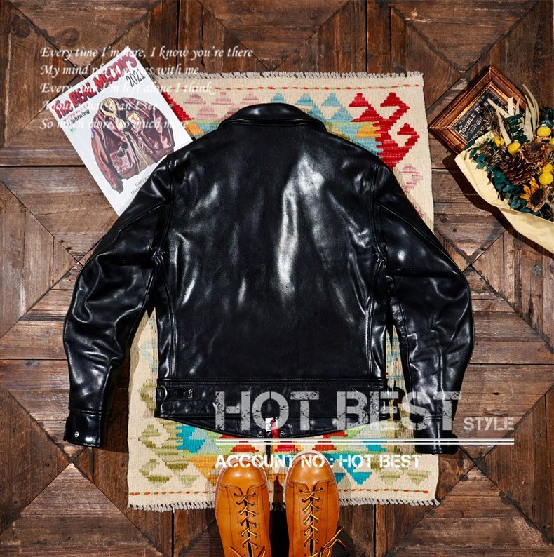 レア 1.5mm 黒芯ホースハイド 30年代 トラッカースタイル メンズ 革ジャン シングル ライダース レザージャケット 馬革 Y1188/34【S】