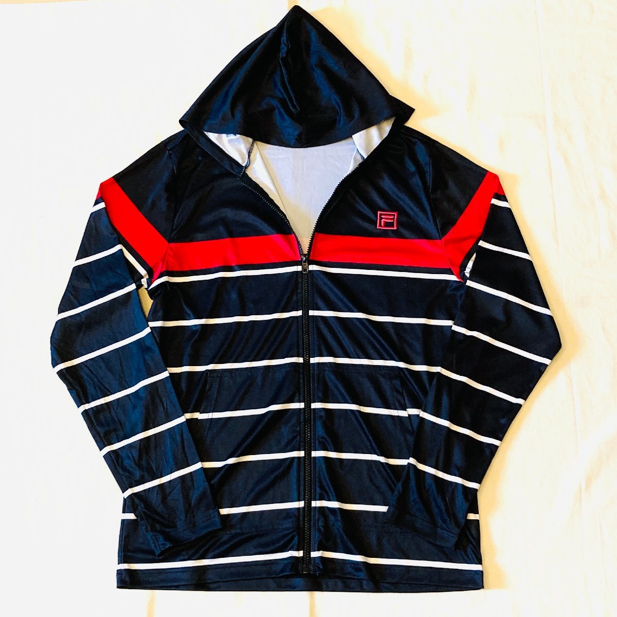 FILA フィラ ジップアップ パーカー フーディー ボーダー柄 ブラック/レッド/ホワイト LL