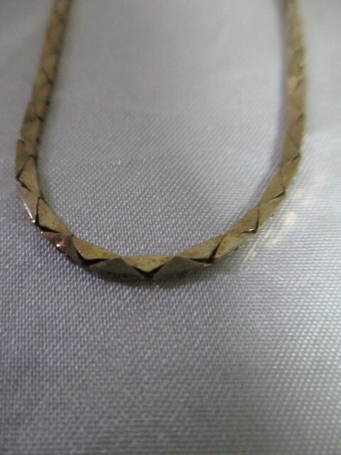 | 商品紹介 | シンプルなゴールドカラーのネックレスです。 チェーンネックレスでトップはありません。 色はゴールドですが、素材は金ではありません。 ※保存袋・箱等の付属品はありません。 (81825) |