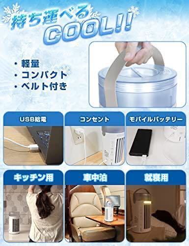【コンパクトで移動ラクラク、どこでもひんやり】取っ手あり、持ち運びも便利。女性でも片手で持ちやすいパーソナルクーラー。卓上冷風機として、デスクにおいても邪魔にならず、オフィス、寝室と子供部屋、キッチンなど様々な場所で使える。暑い中のデスクワーク、在宅ワークも快適。