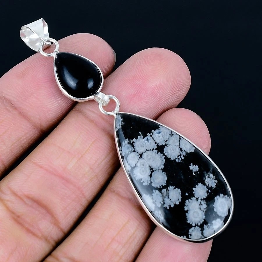 オブシディアン 黒曜石 ペンダント 今回限り 10月末日到着予定 スノーフレークオブシディアン925シルバーメッキハンドメイド 7.4168㎝