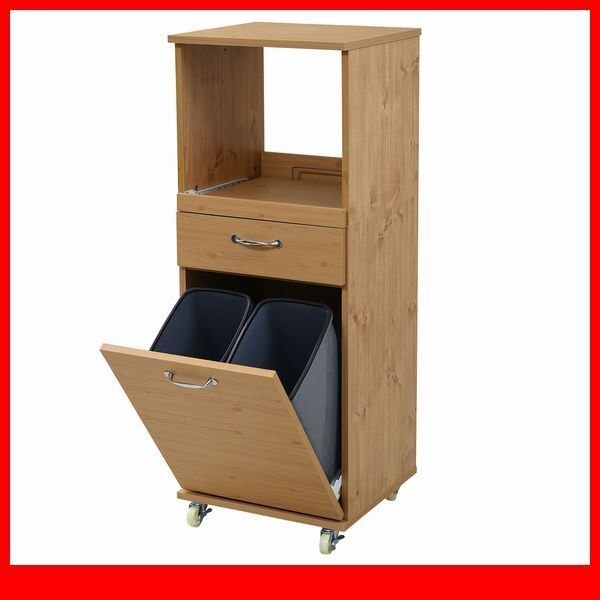 レンジ台★スリム キッチンラック ペールワゴンタイプ H120cm/レンジ台 家電収納 ダストボックス/キャスター付/ナチュラル/FLLA-0069/a1
