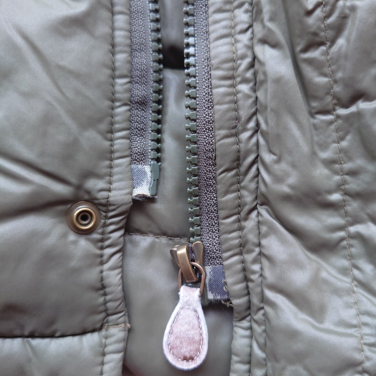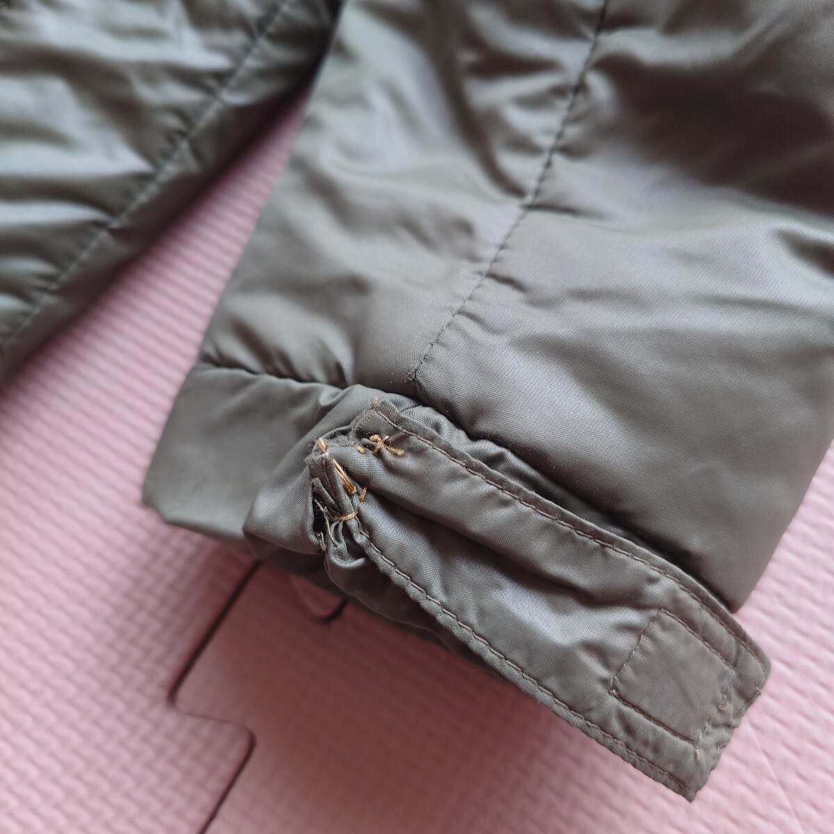 かなり着用してましたので、使用感があります。また、取れそうでしたので縫い付けがあります。(画像6枚目、7枚目)