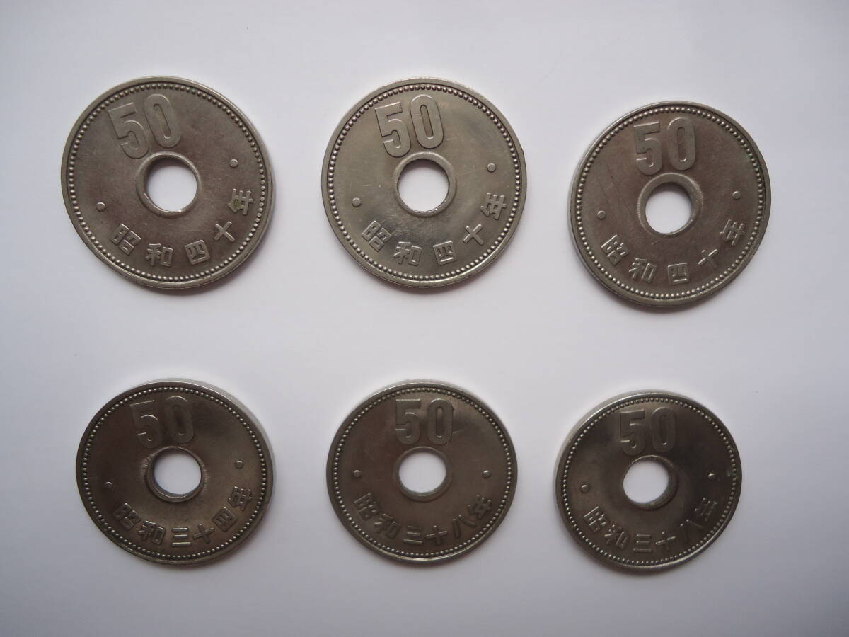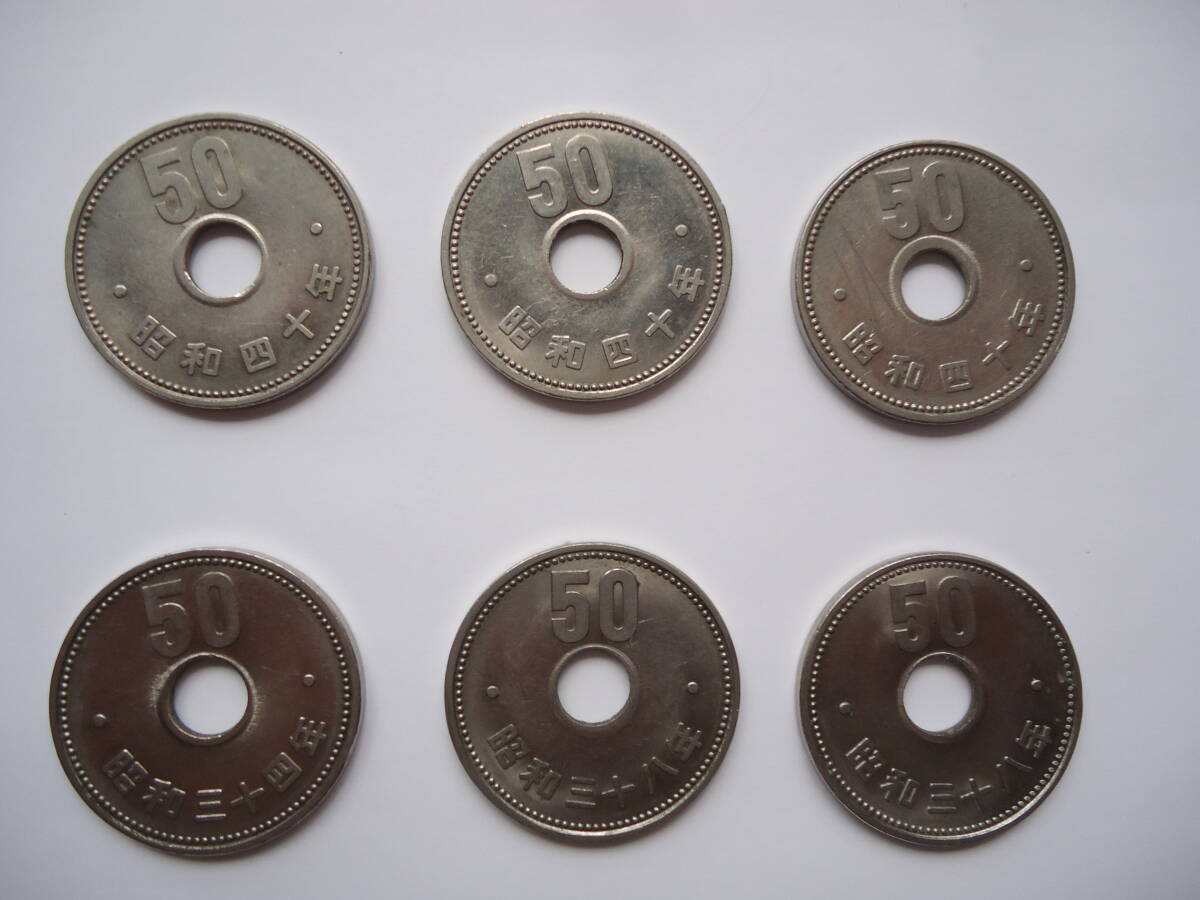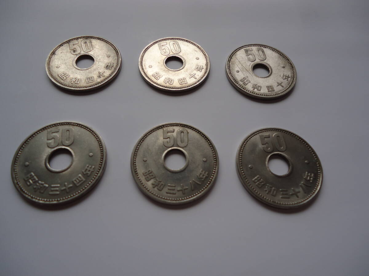 50円硬貨 菊ニッケル貨 穴ズレ気味 エラー気味 日本国 昭和34年、昭和38年、昭和40年 6枚セット