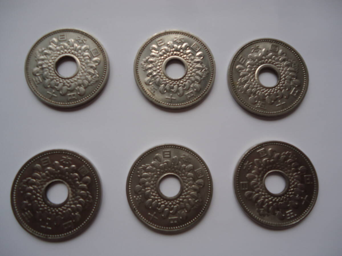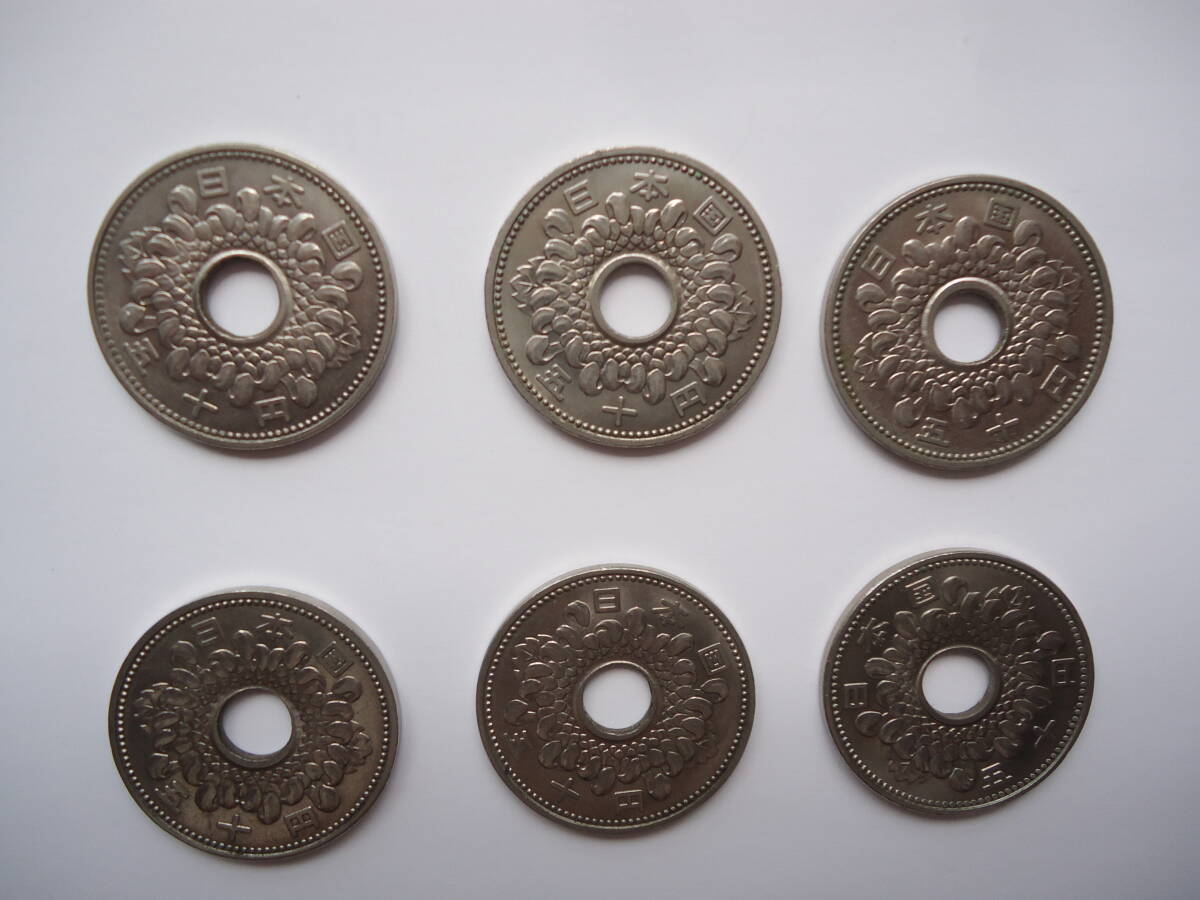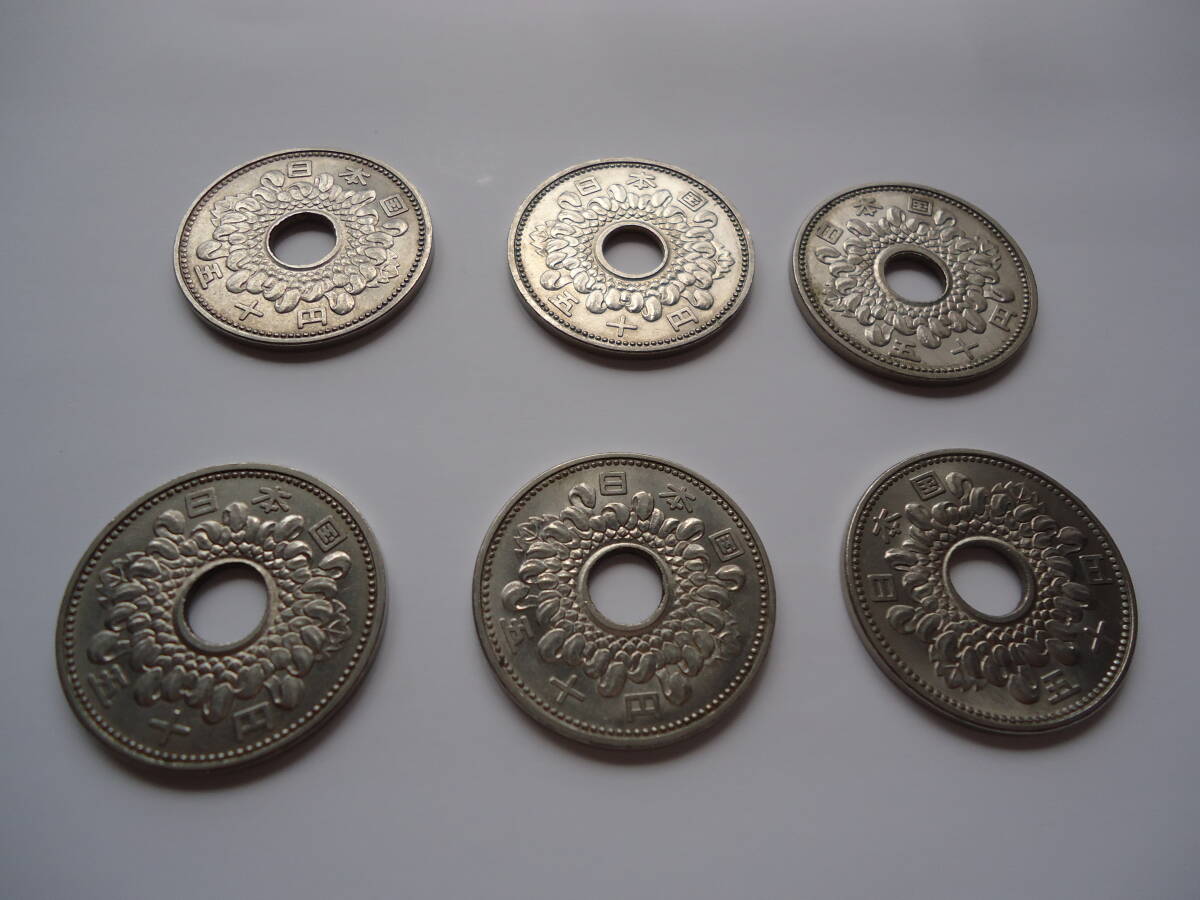 50円硬貨 菊ニッケル貨 穴ズレ気味 エラー気味 日本国 昭和34年、昭和38年、昭和40年 6枚セット