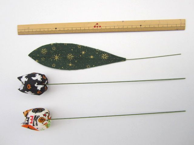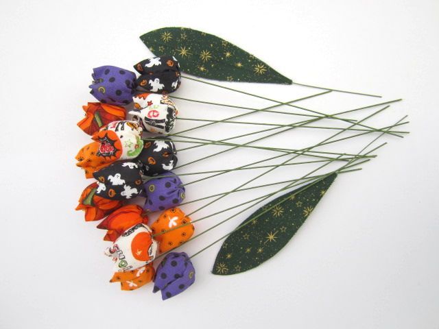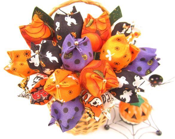 ・ ハロウィン柄のチューリップ15本+葉っぱ2枚付きです。