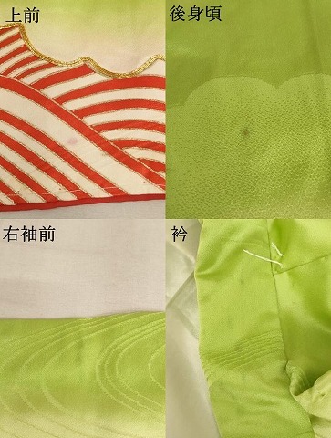 着物【正絹】の状態は接写画像のように上前・後身頃・右袖前・衿に汚れがございますが その他特に目立ったシミ汚れなどもなく大変良い状態です。 大変上質な逸品になります。 お安く出品致しますので、是非この機会にいかがでしょうか? |