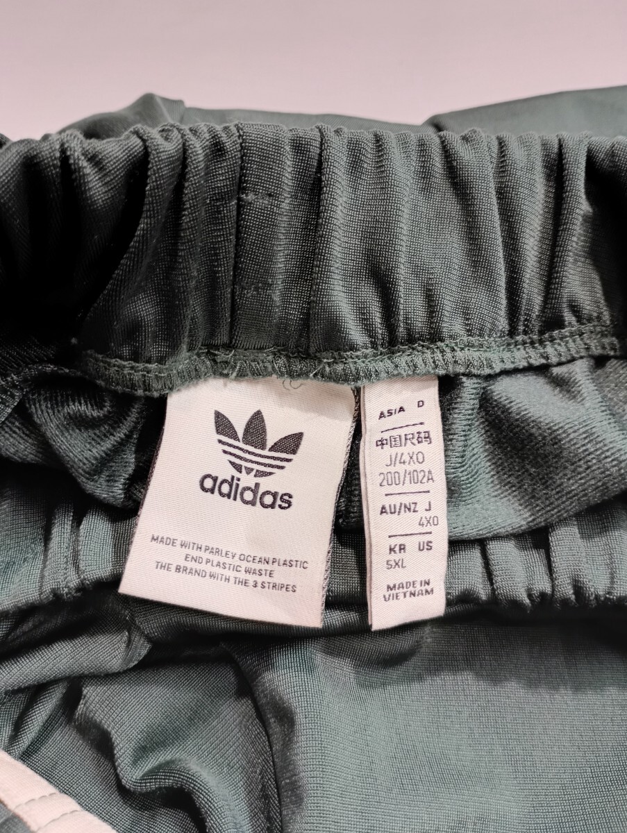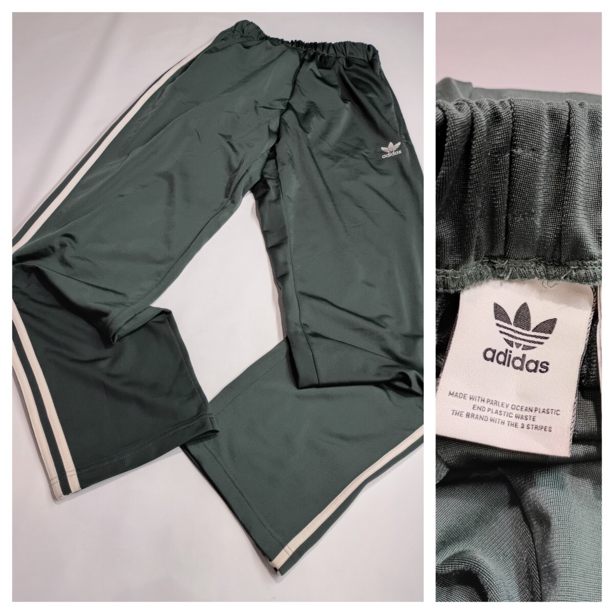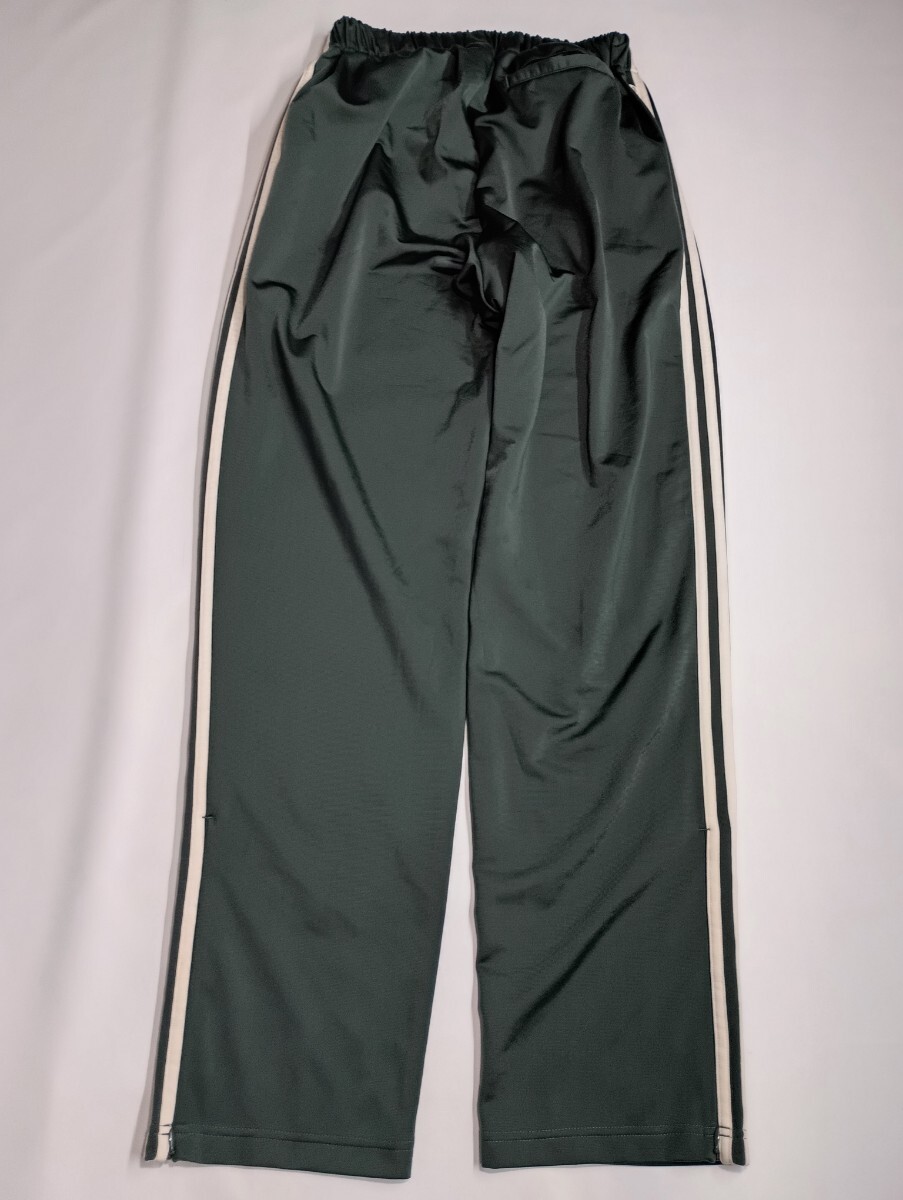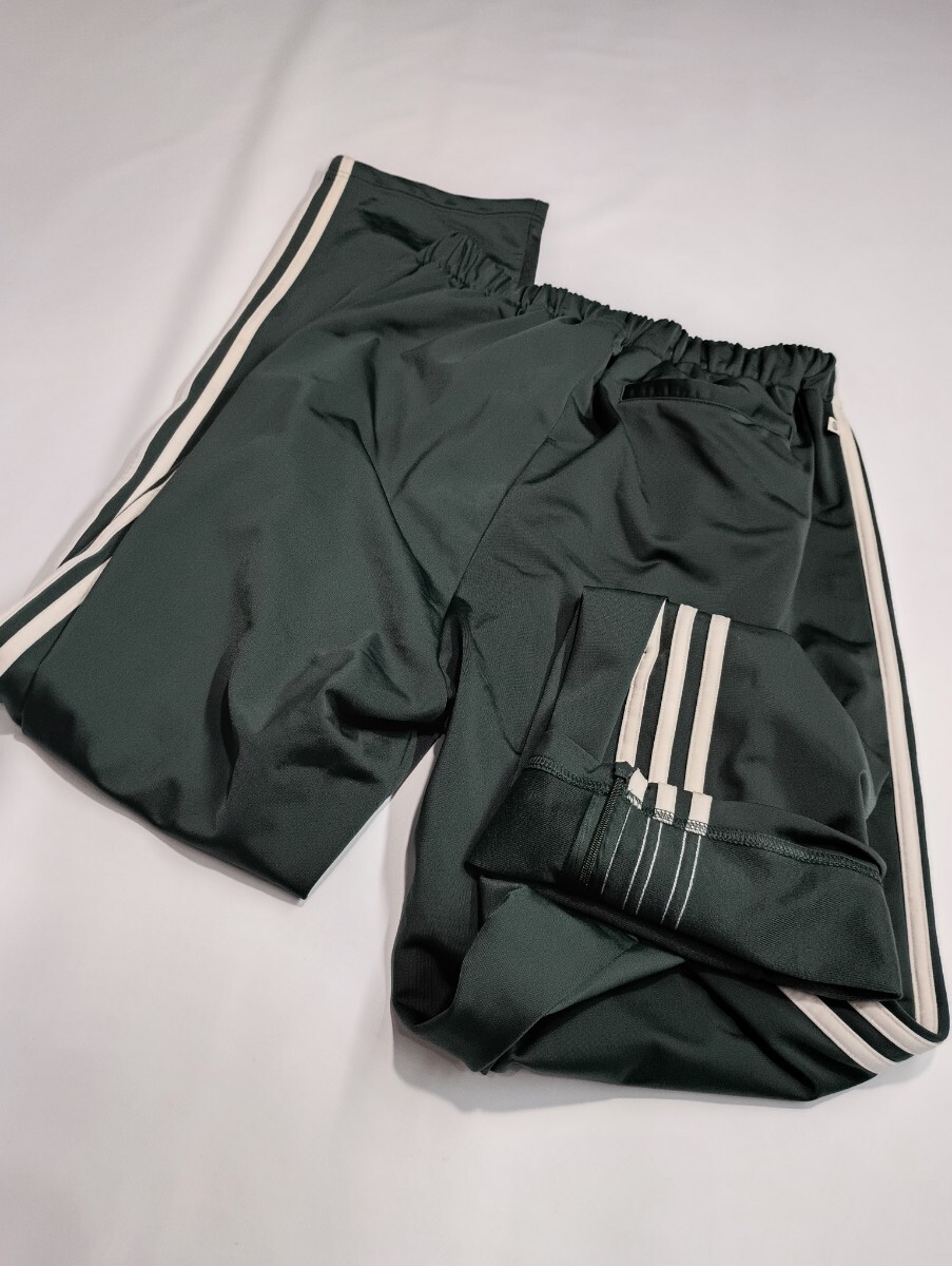 adidas アディダス END PLASTIC WASTE 深緑×ベージュ 三つ葉 トレフォイル サイドライン トラックパンツ ジャージ 4XO約70〜114cm グリーン