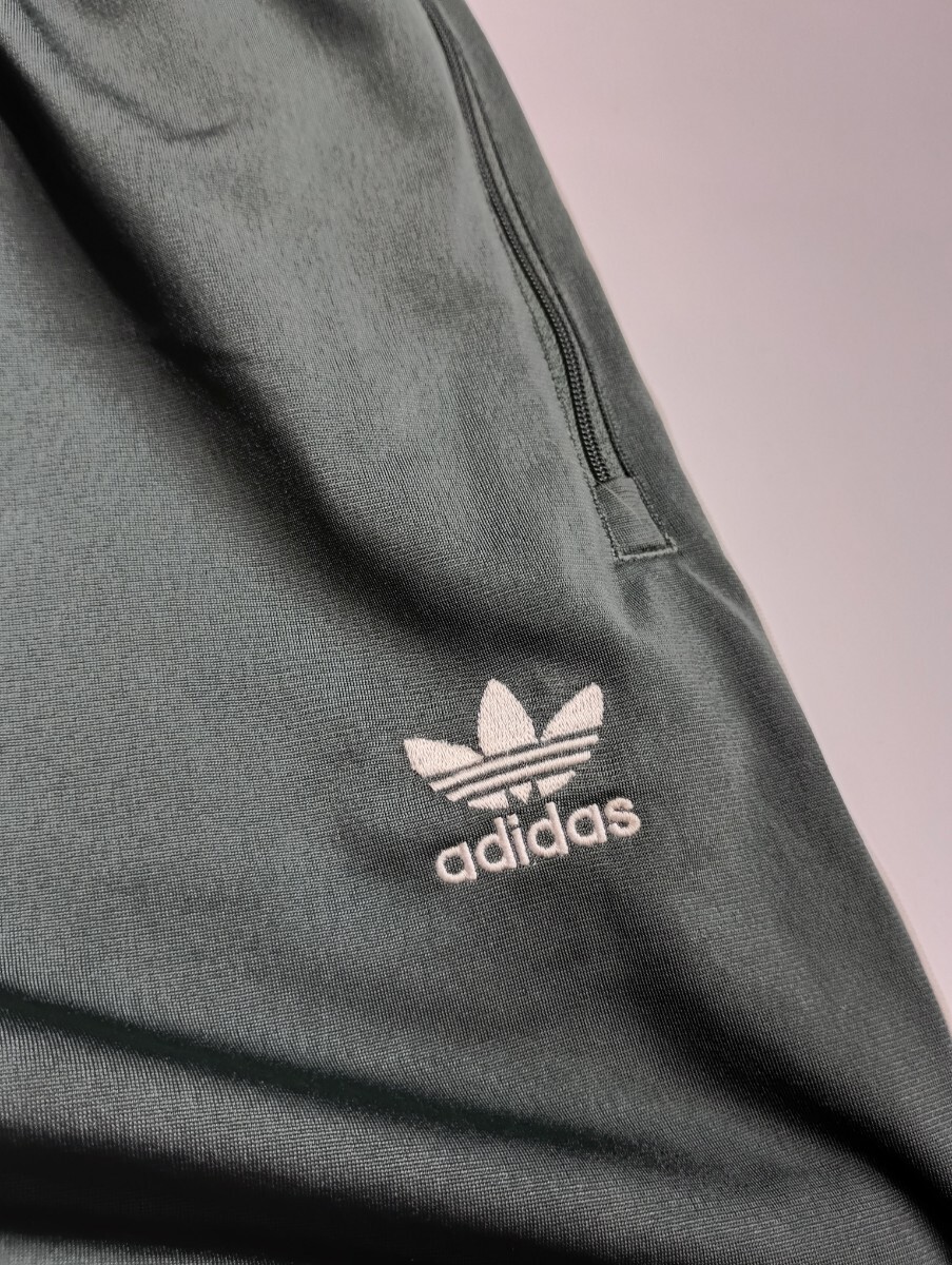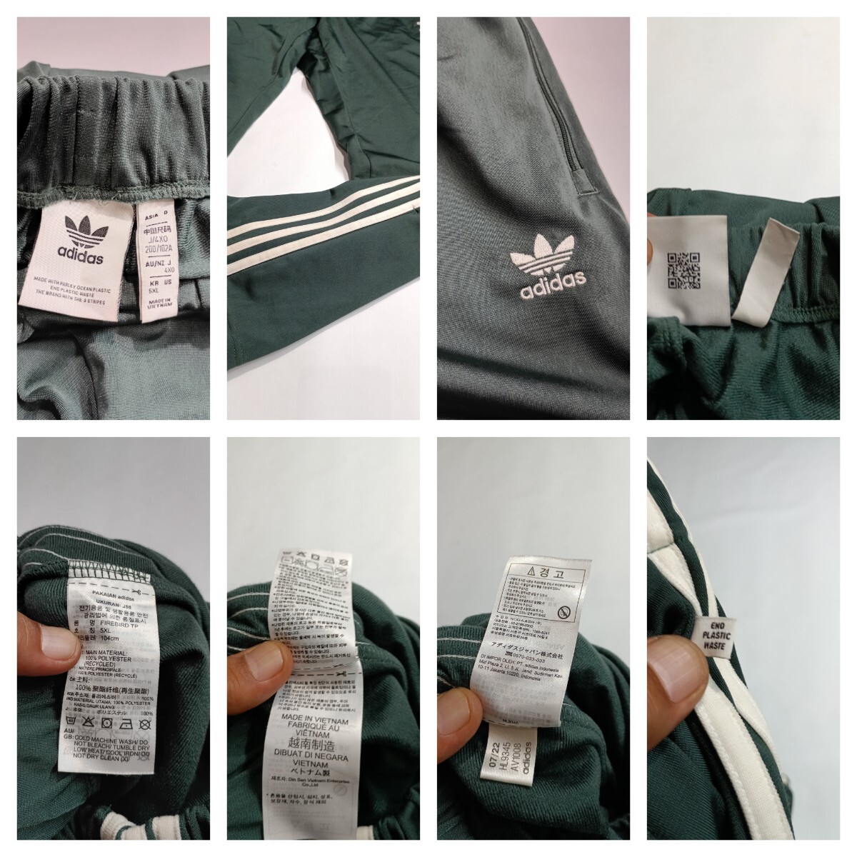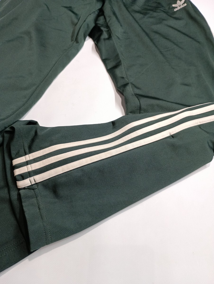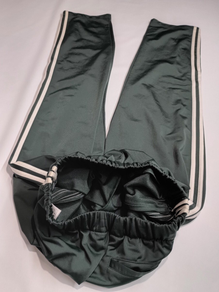 adidas アディダス END PLASTIC WASTE 深緑×ベージュ 三つ葉 トレフォイル サイドライン トラックパンツ ジャージ 4XO約70〜114cm グリーン
