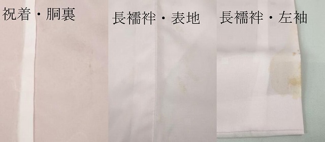 【祝着】 身丈 96.5cm(肩から) 裄丈 50cm 袖丈 54cm 縫込み 2cm 袖幅 31.5cm 前幅 15cm 後幅 19cm 着物縫いこみ 内揚げ 0cm 裄 お袖側 約0cm 身頃側 約1cm 【長襦袢】 身丈 96.5cm(肩から) 裄丈 46.5cm 袖丈 55cm 縫込み 0cm 袖幅 30cm 前幅 14.5cm 後幅 19cm 着物縫いこみ 内揚げ 0cm 裄 お袖側 約2cm 身頃側 約0cm 《 サイズについてはこちら 》 |