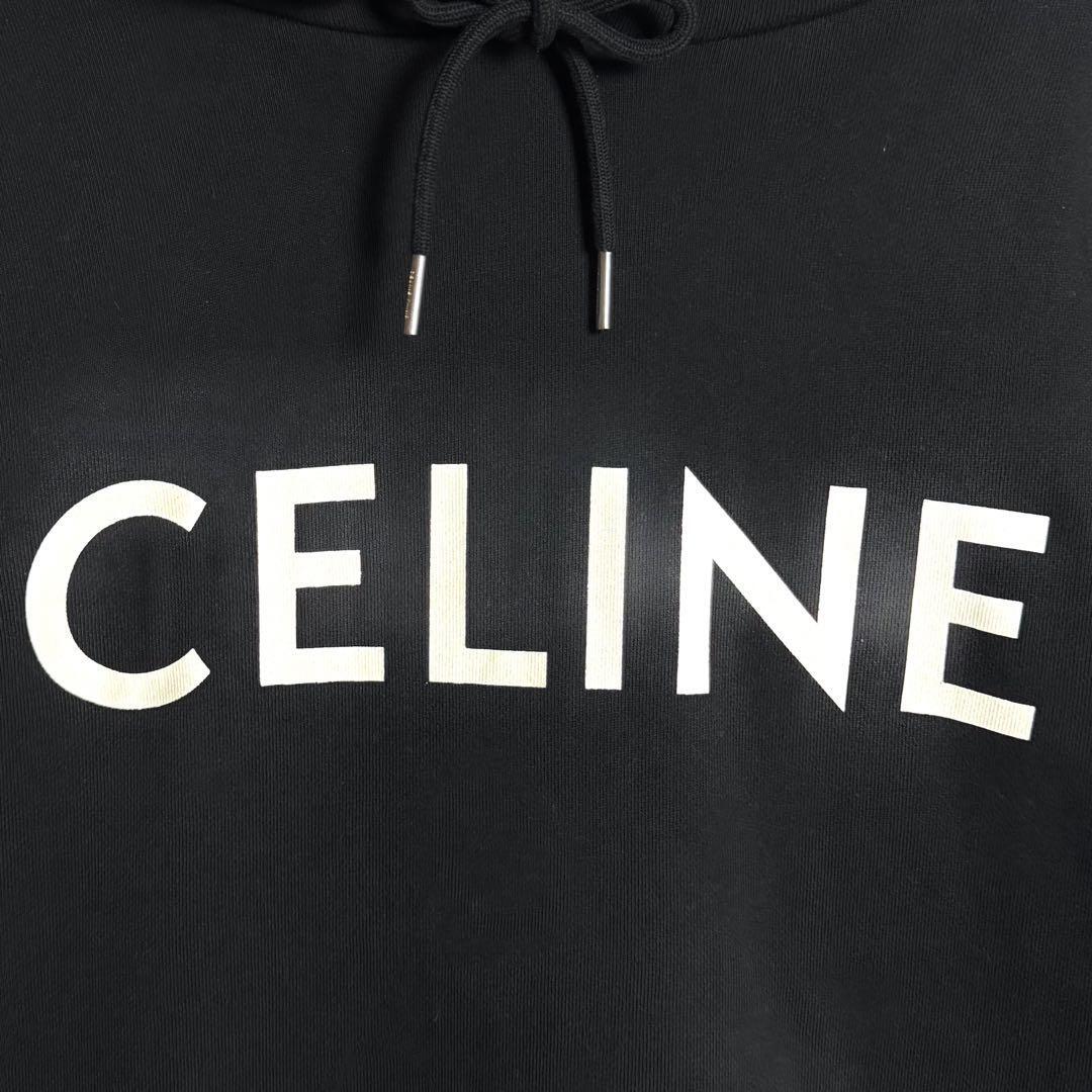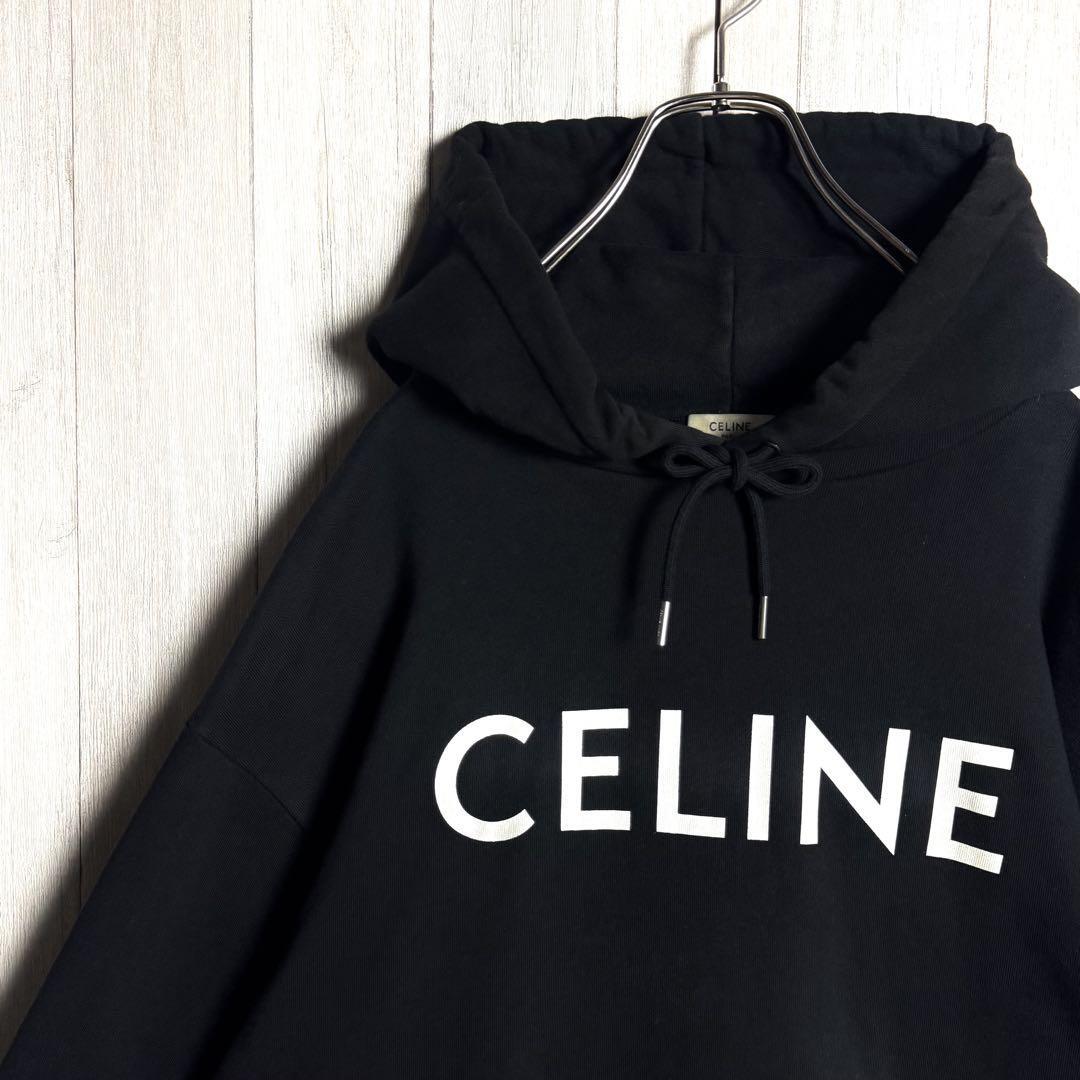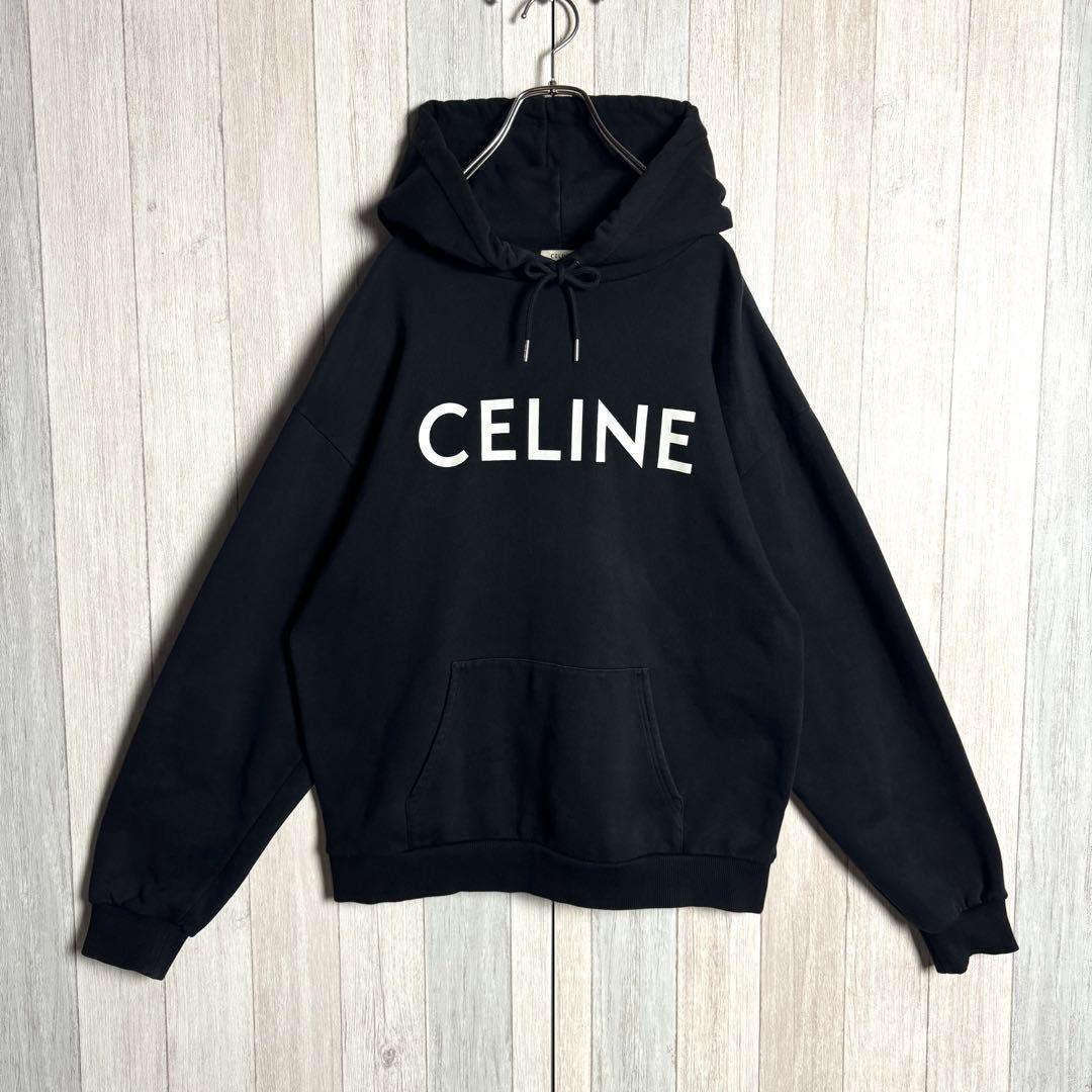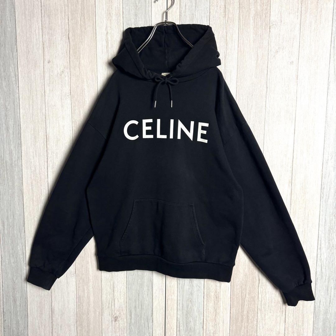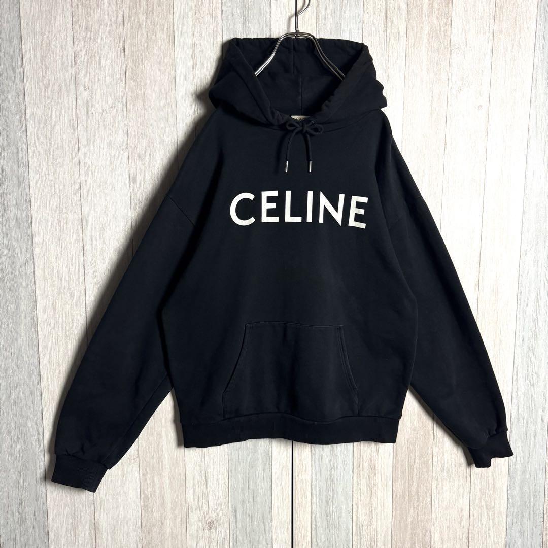 【超人気デザイン・Lサイズ】イタリア製 CELINE セリーヌ センターロゴ フーディー スウェットスウェット パーカー ブラック 黒
