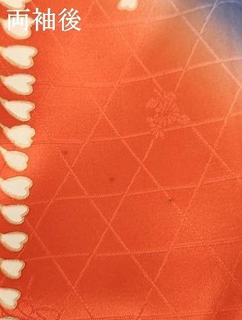 【祝着】 身丈 130cm(肩から) 裄丈 51.5cm(肩上げ 2.5cm) 袖丈 77cm 縫込み 3cm 袖幅 30.5cm 前幅 21cm 後幅 27cm 着物縫いこみ 内揚げ 6.5cm (腰上げ 0cm) 裄 お袖側 約0.5cm 身頃側 約7cm 《 サイズについてはこちら 》 |