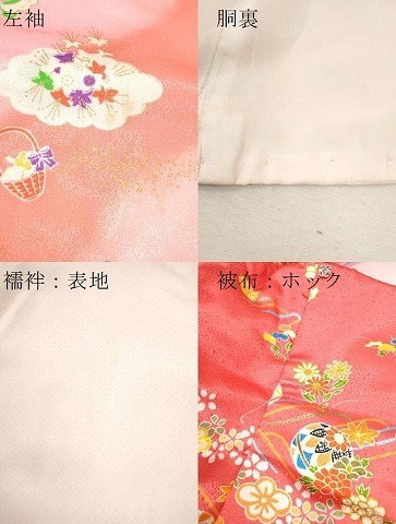 【祝着】 身丈 64.5cm(肩から) 裄丈 41.5cm(肩上げ 2.5cm) 袖丈 54.5cm 縫込み 1cm 袖幅 26cm 前幅 15cm 後幅 20.5cm 着物縫いこみ 内揚げ 0cm (腰上げ 10cm) 裄 お袖側 約1.5cm 身頃側 約1.5cm 【被布】 身丈 49.5cm(肩から) 裄丈 16cm(肩上げ 2cm) 【長襦袢】 身丈 59.5cm(肩から) 裄丈 39cm(肩上げ 0cm) 袖丈 54.5cm 縫込み 1cm 袖幅 25cm 前幅 24cm 後幅 20cm 着物縫いこみ 内揚げ 0cm (腰上げ 2.5cm) 裄 お袖側 約4cm 身頃側 約1cm 《 サイズについてはこちら 》 |