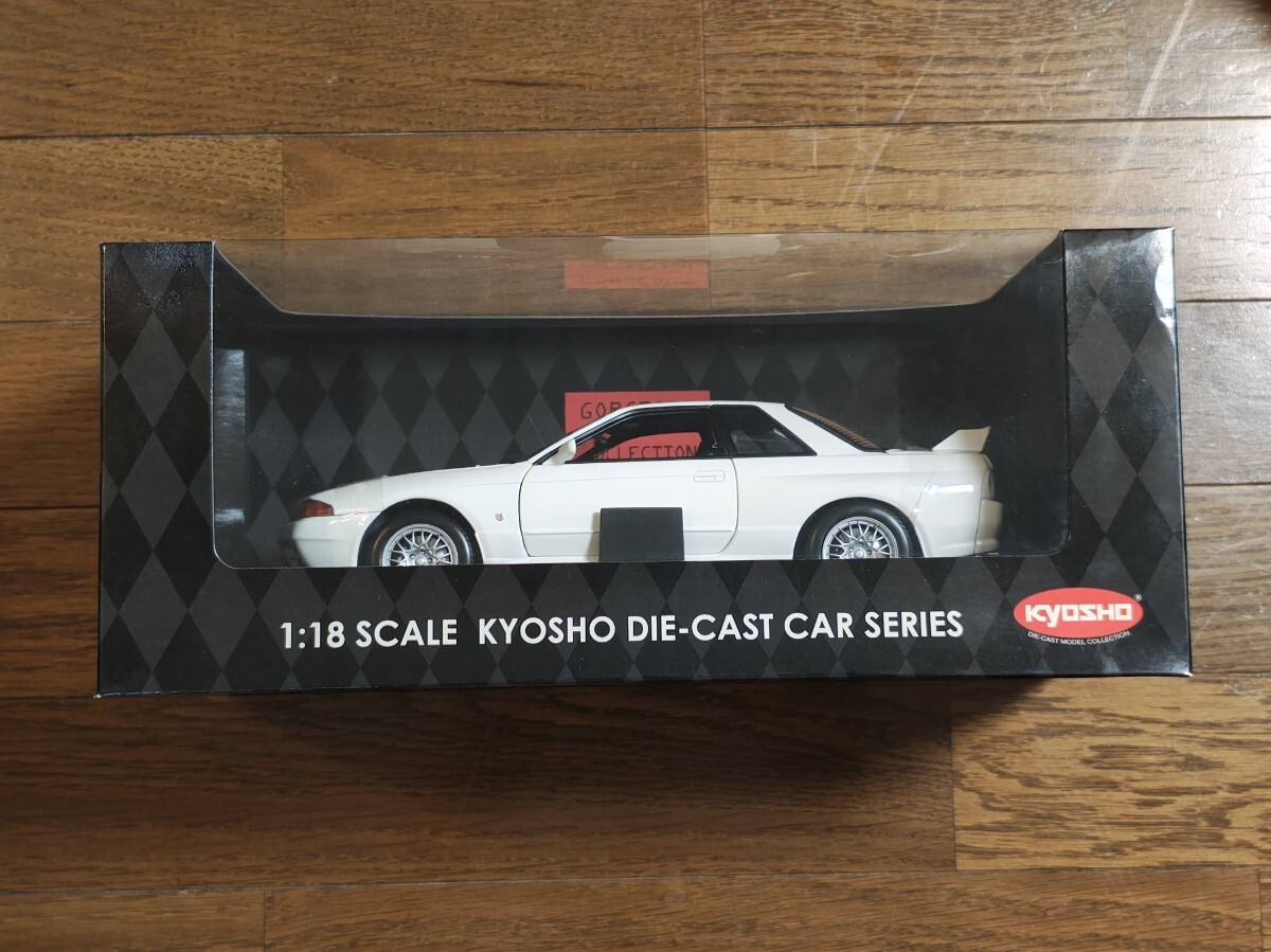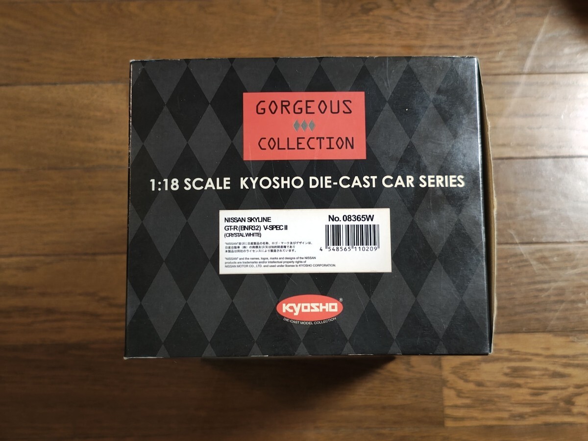 当時物の京商 1:18 DIE-CAST CAR SERIES ニッサン スカイライン GT-R(BNR32) V-SPECⅡ (CRYSTAL WHITE) No.08365Wのデッドストックです。