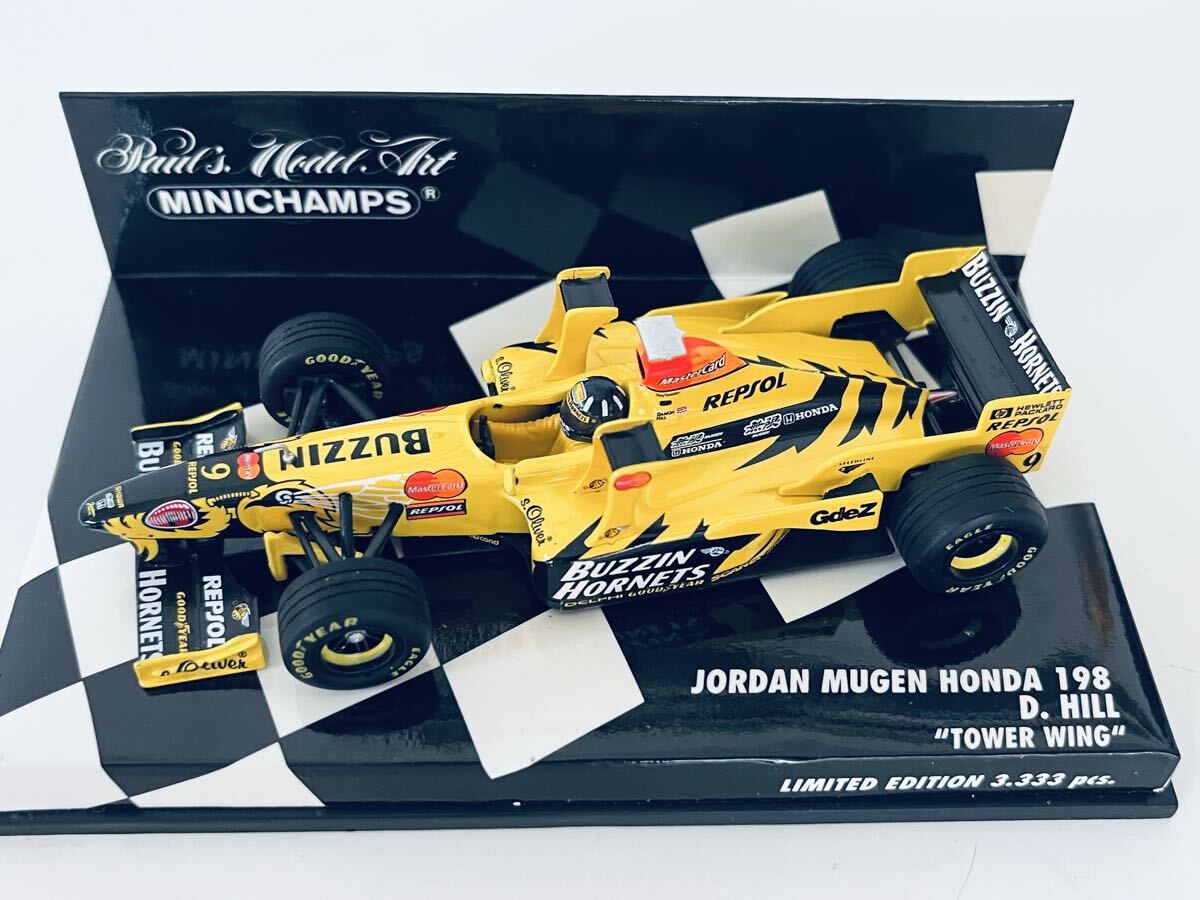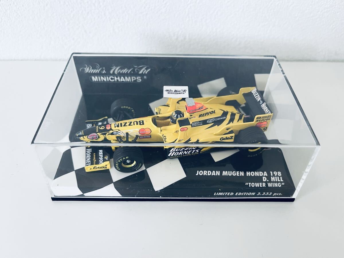 1/43 Minichamps Jordan Mugen Honda ジョーダン 無限ホンダ 198 #9 D.Hill ヒル Tower Wing 1998です。