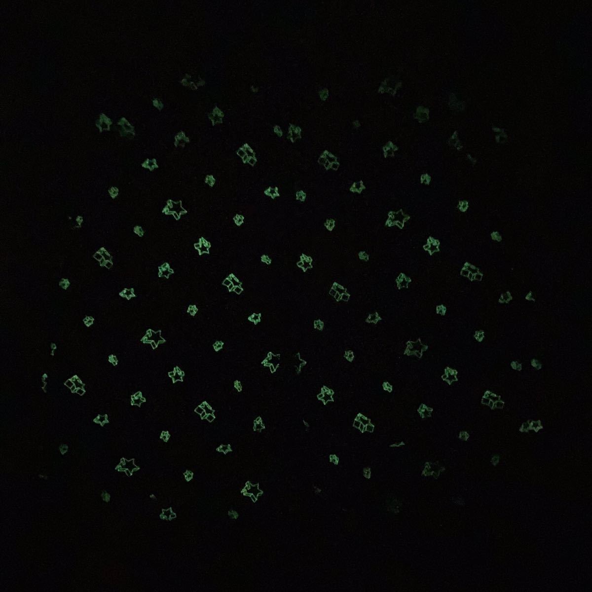 スター柄に蓄光糸が使用されており、暗闇で発光します(画像3、4枚目)