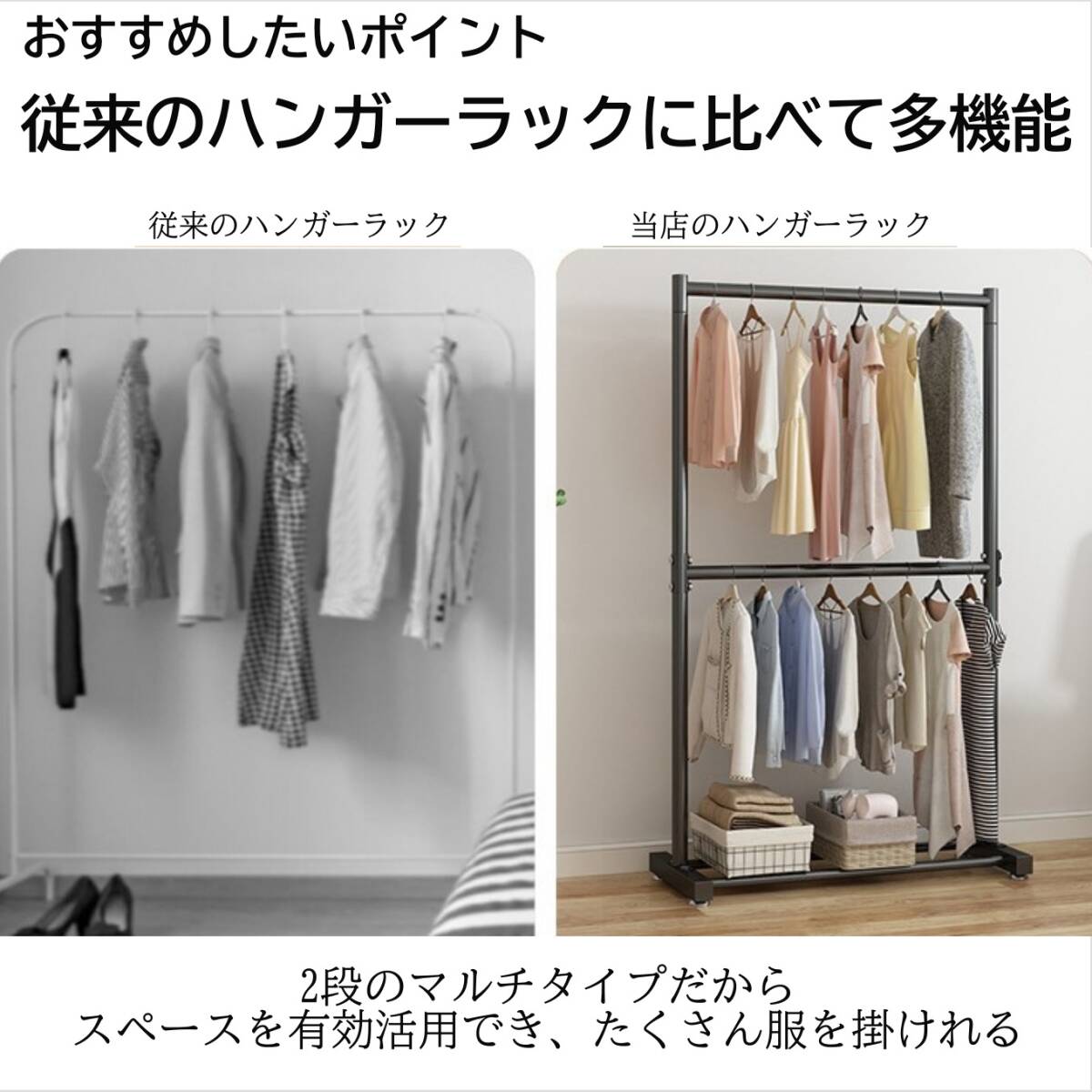 ハンガーラック 2段 衣類収納 高耐荷重 大容量 夏服 コンパクト 幅60cm ブラック 洋服 頑丈 シンプル ナチュラル 多機能 一人暮らし 黒