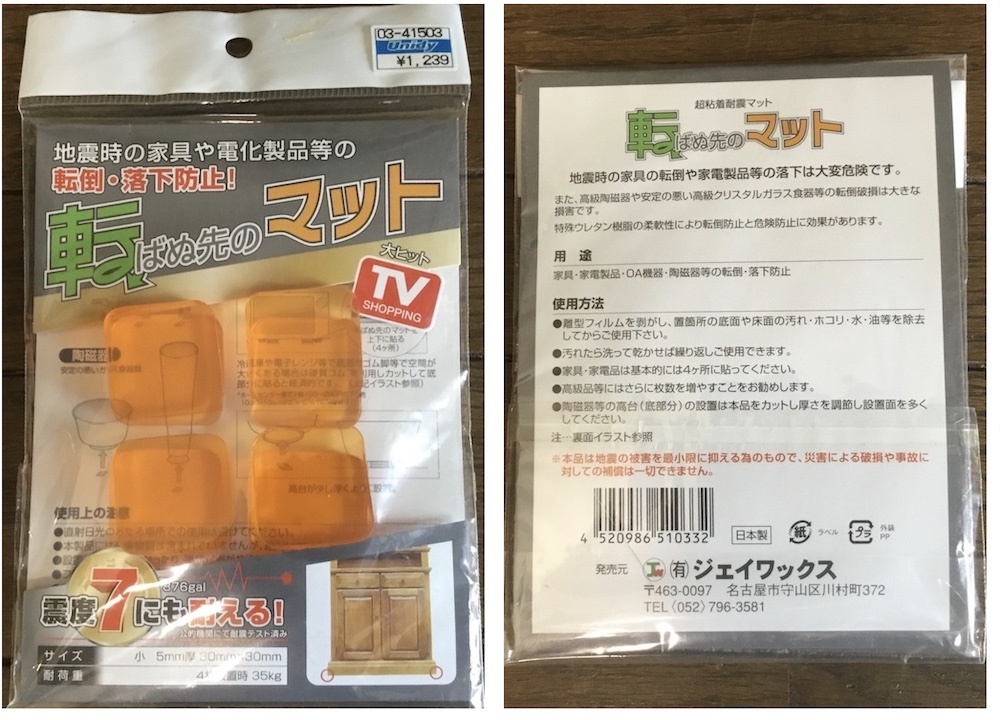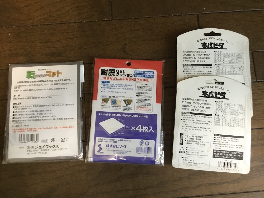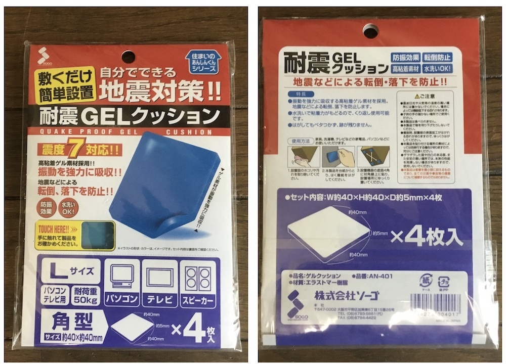 地震対策 転倒防止 耐震ジェルクッション 4種類