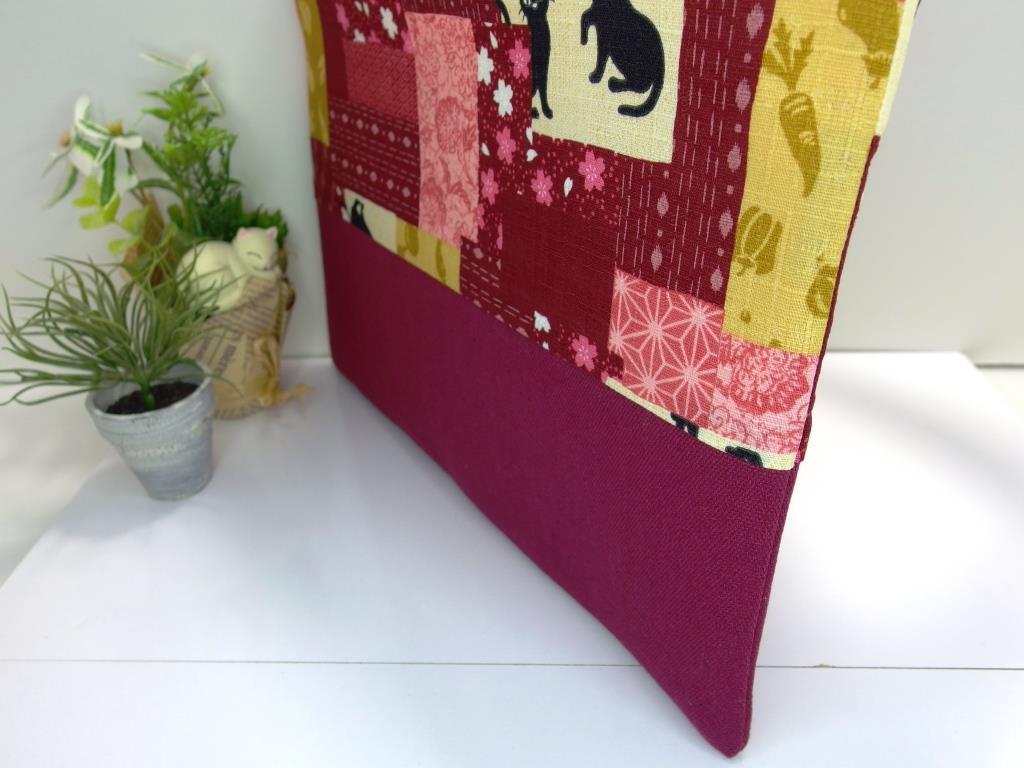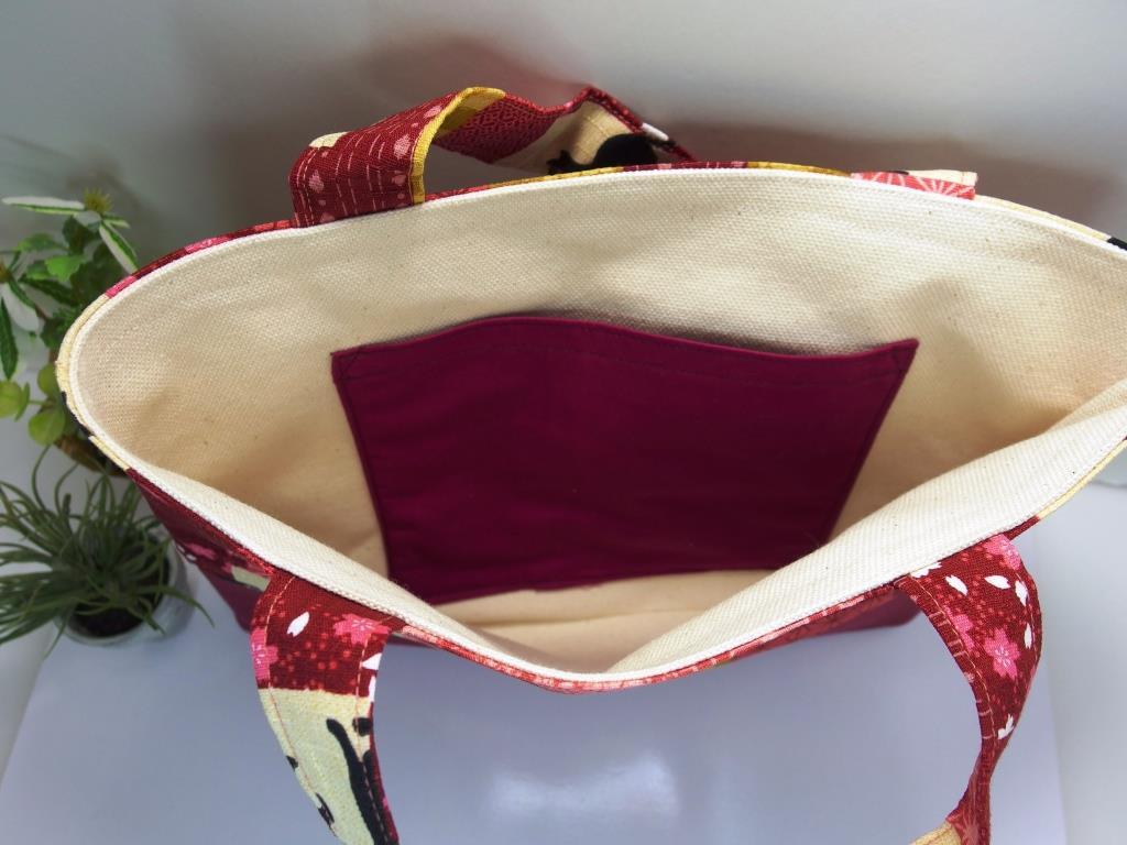 ハンドメイド 和柄の猫ちゃんトートバッグ まち無し②