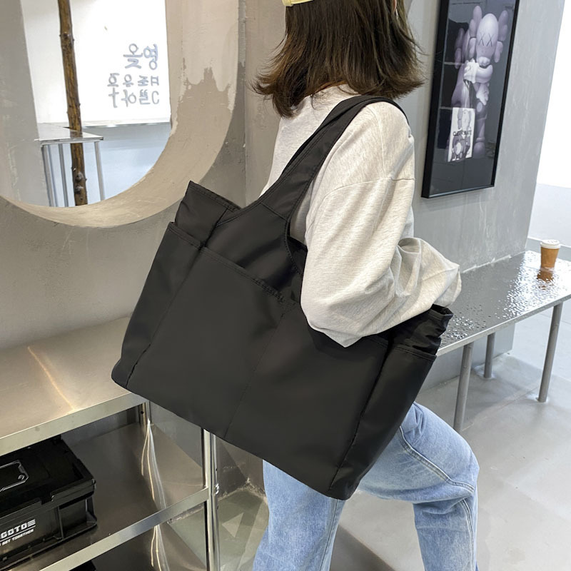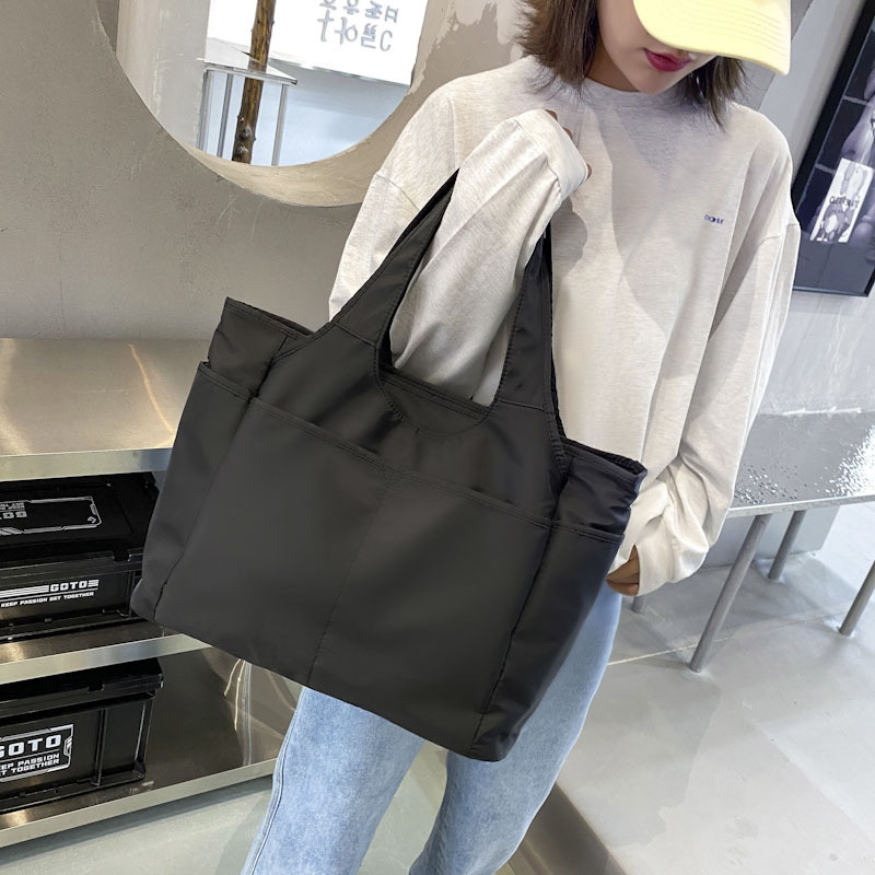 トートバッグ レディース 大きめ A4 軽い ポケット多い ナイロン 通勤 撥水 小物入れ シンプル JHB0027 ブラック