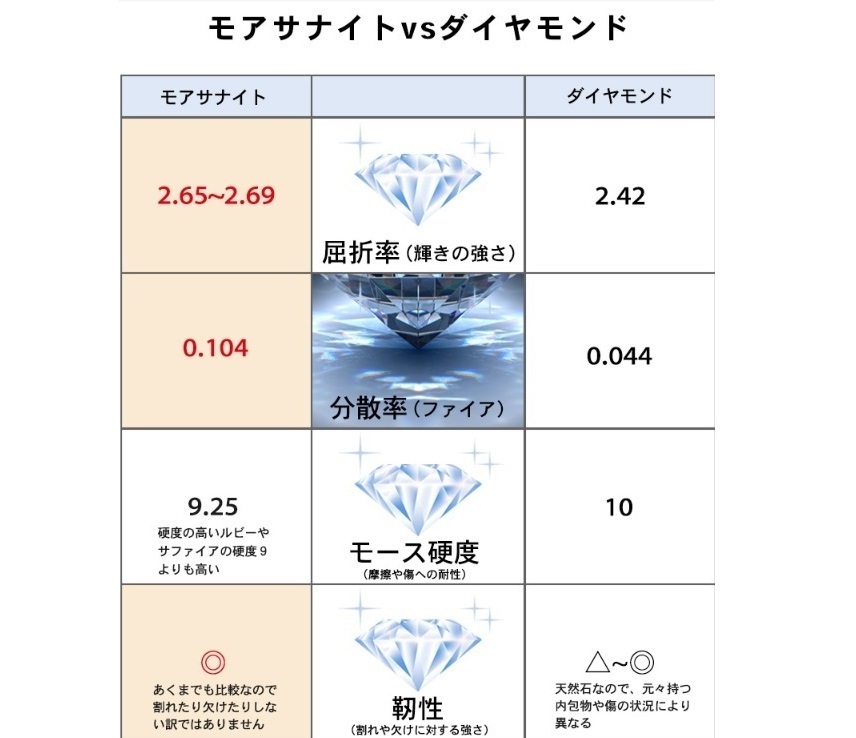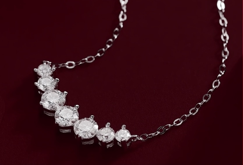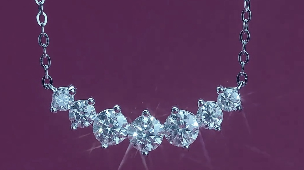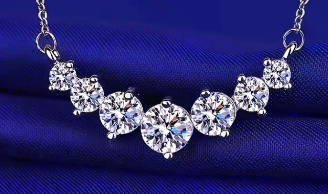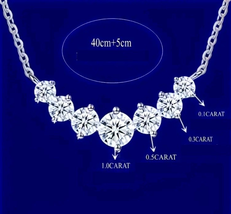 ダイヤモンドを超える2.4倍のキラメキ!虹色に輝く宝石「モアサナイト」 貴方の首元に、虹色に輝く宝石「モアサナイト」7粒 石大きさ (約): 1ctX1個 0.5ctX2個 0.3ctX2個 0.1ctX2個 合計 7個 | |||||||