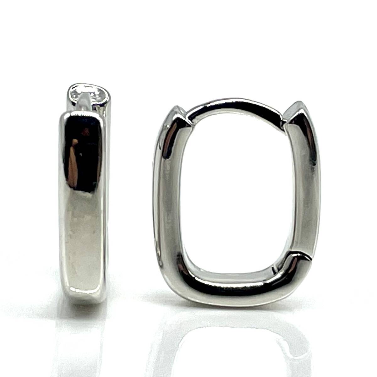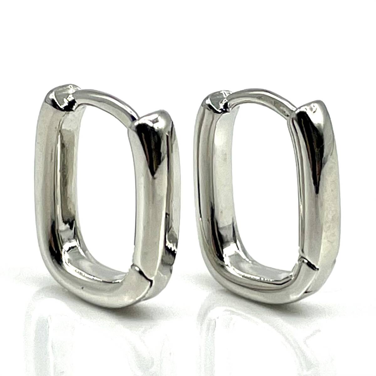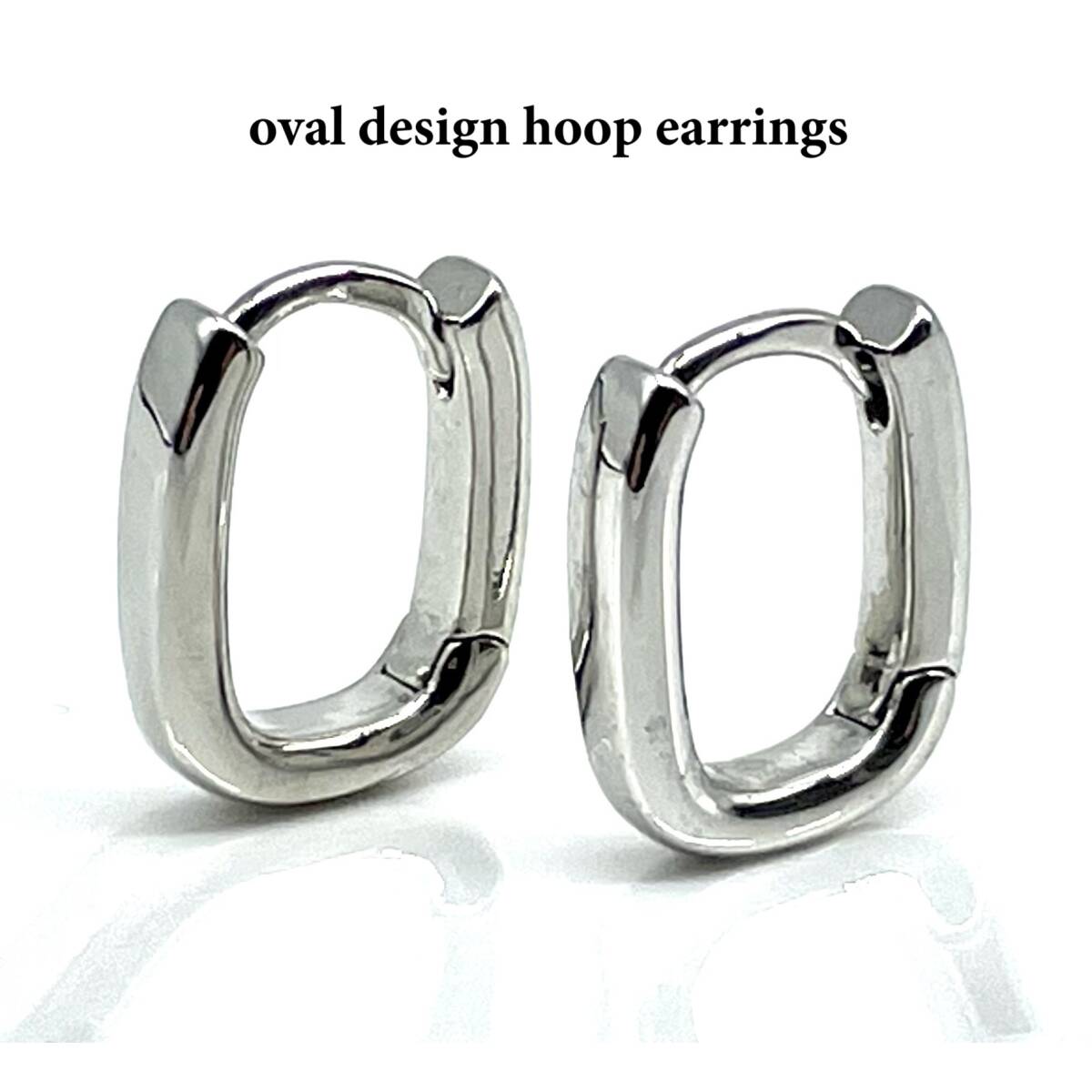 ラウンドスクエアのシンプルなデザインがファッション性の高いフープピアス。