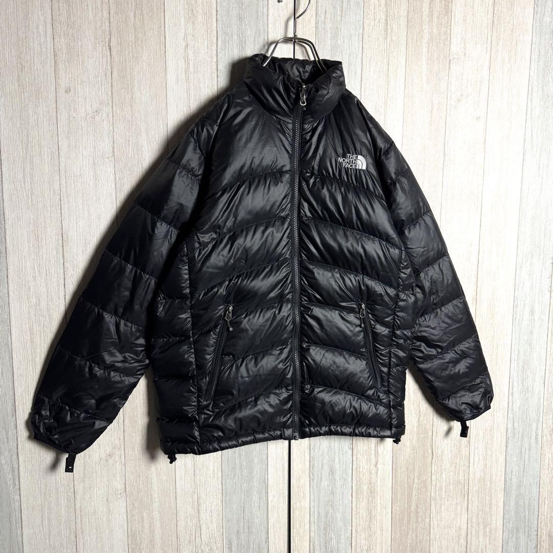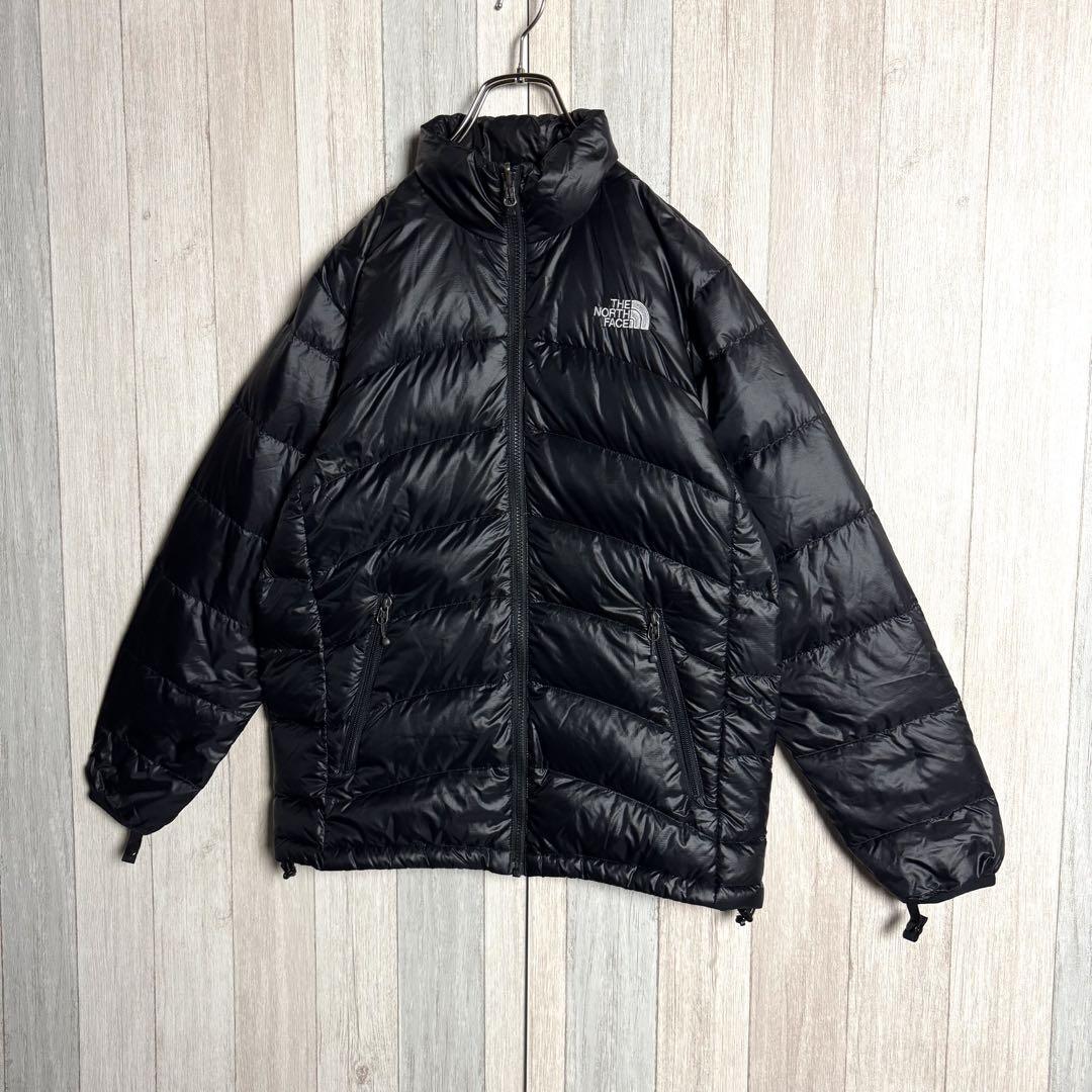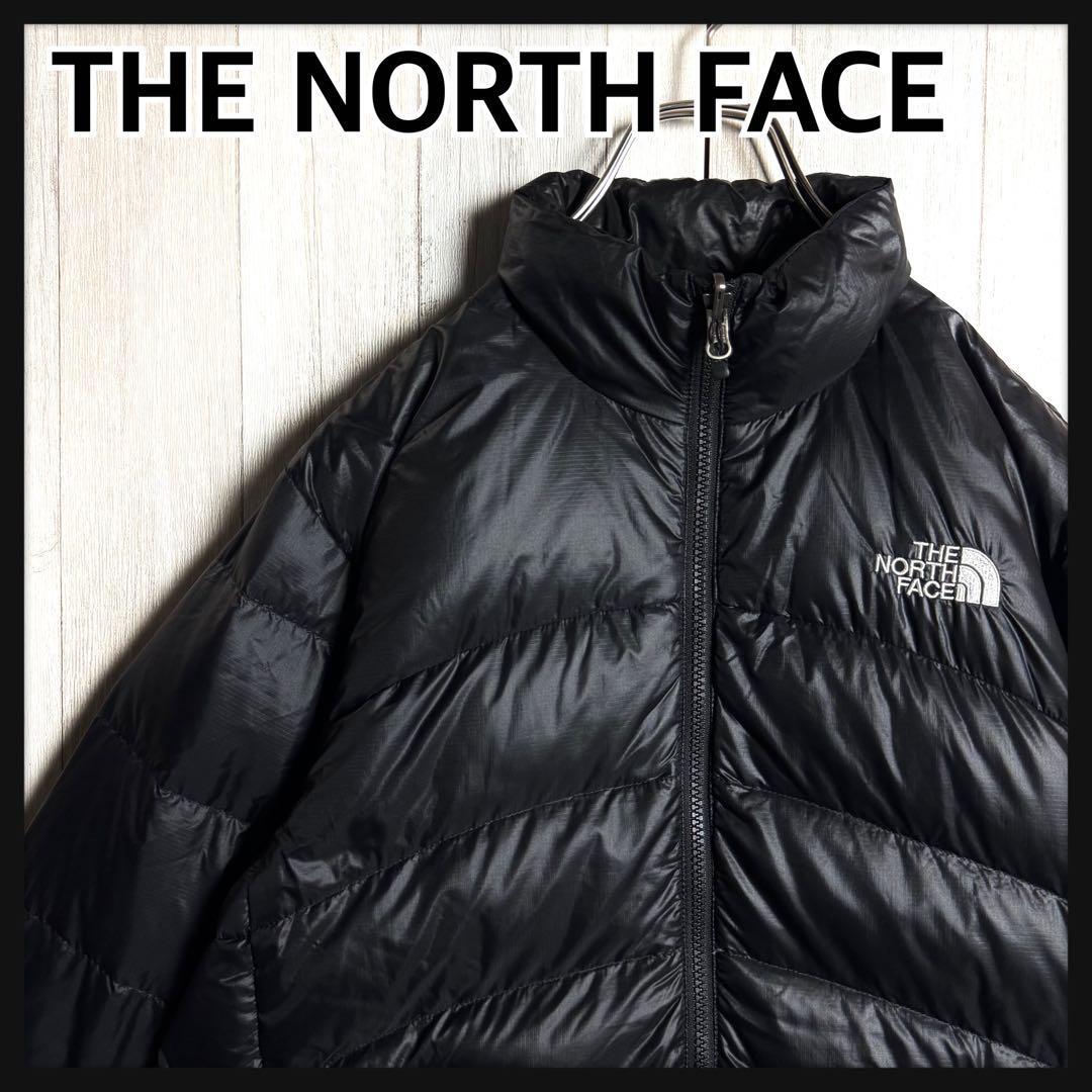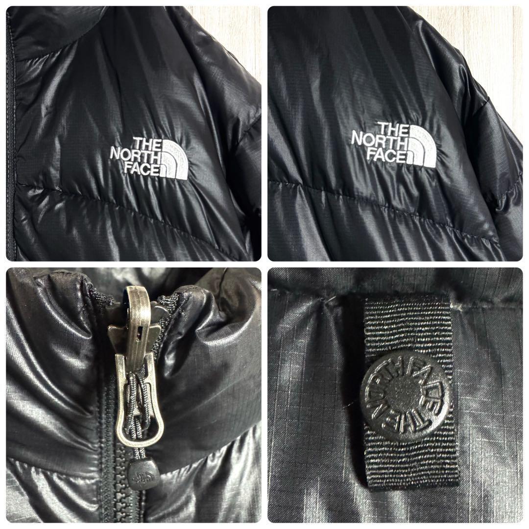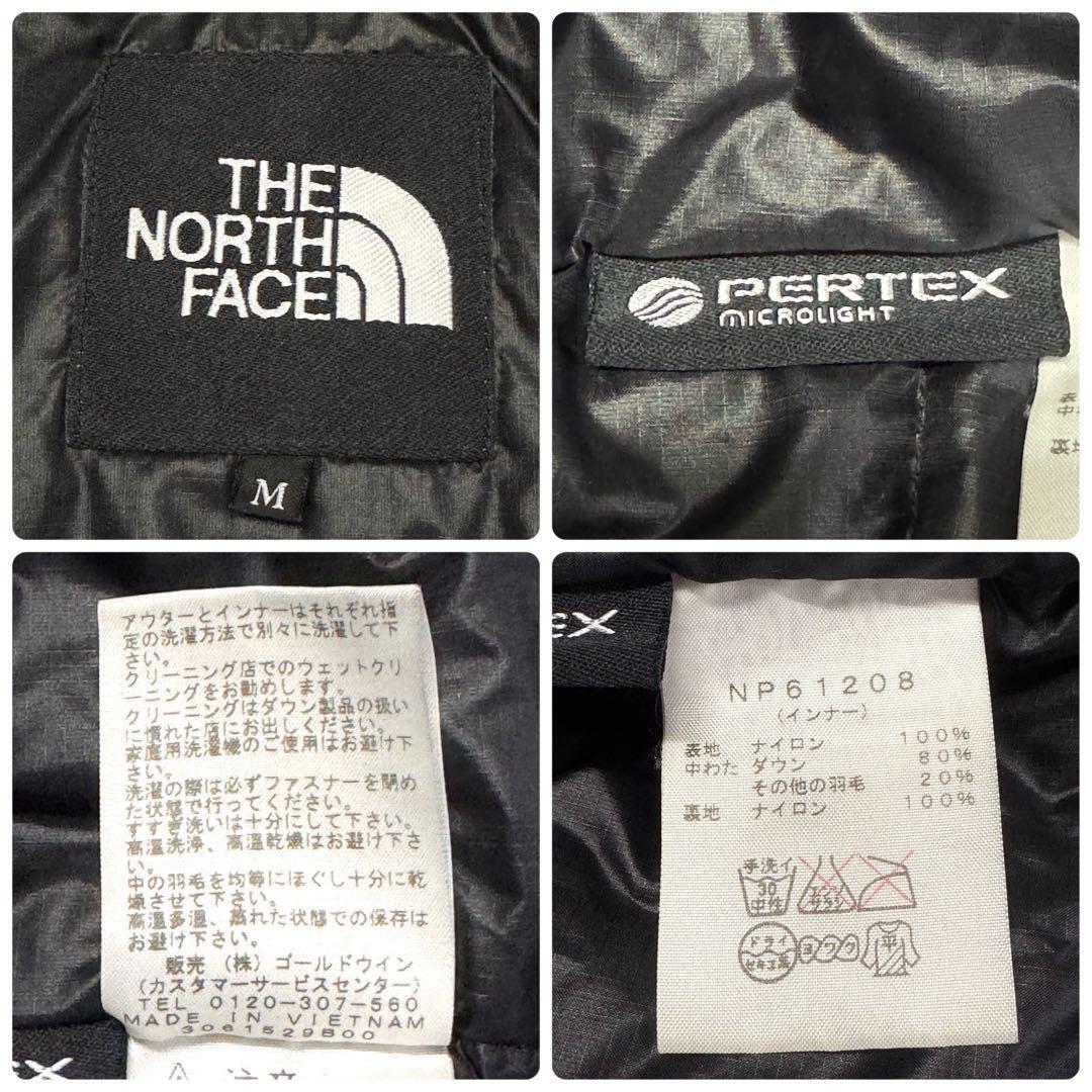【人気・美品】THE NORTH FACE ノースフェイス PERTEX リップストップナイロン 両面刺繍ロゴ ライトダウンジャケット ブラック・黒 M