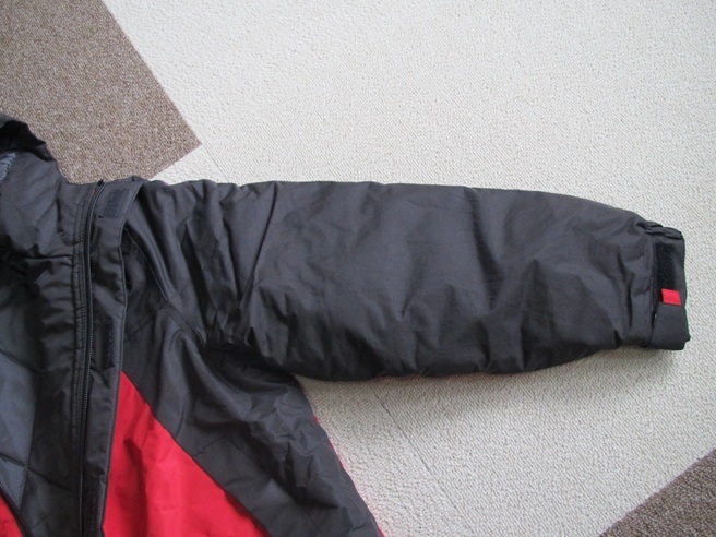 中綿入り、袖口にリブ付(マジックテープで調整可)、