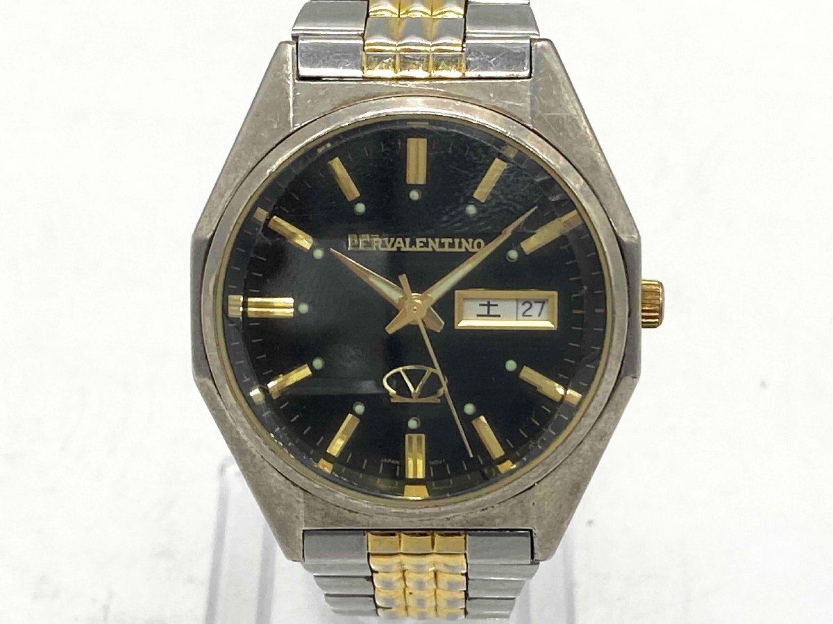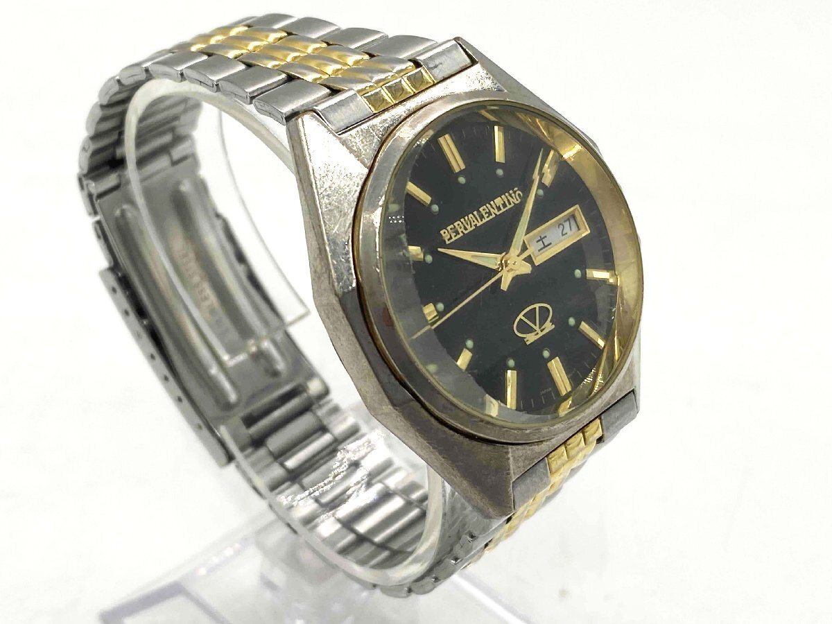 ★【動作品】PER VALENTINO ペレバレンチノ メンズ腕時計 VA6003 カットガラス 黒文字盤 クオーツ★/H