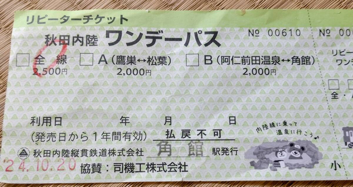 秋田内陸縦貫鉄道の全線ワンデーパスになります。