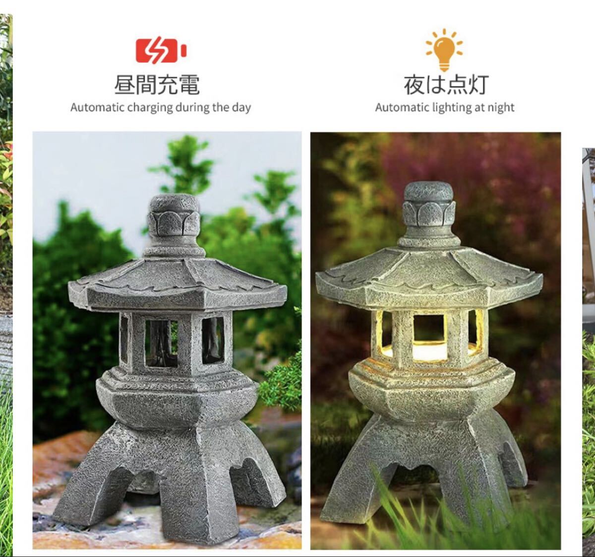 品名ガーデンライト ソーラー 式灯篭 (stone-lan-w)