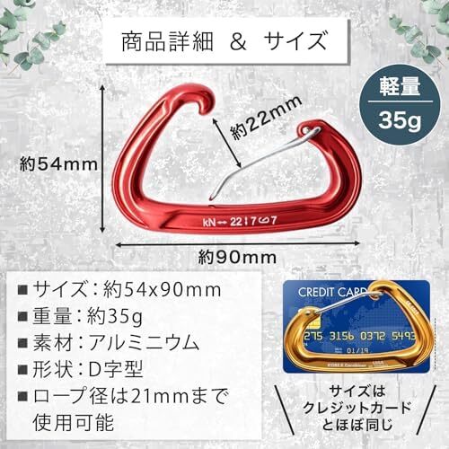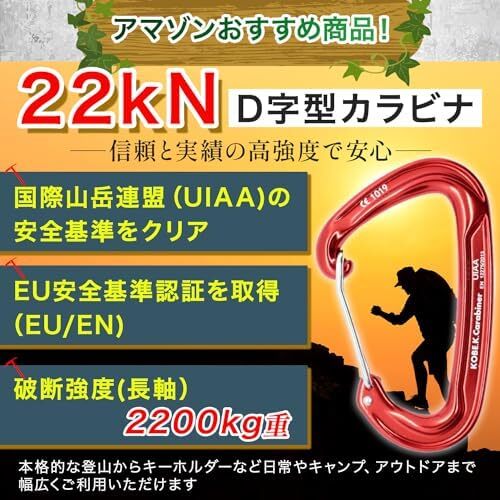 1 レッド カラビナ専門店 神戸輝き 22kN 国際山岳連盟(UIAA)規格 CE,EN認証 破断強度 約2200kg重 国内テス