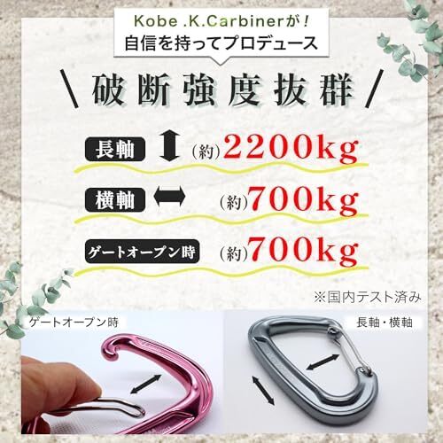 カラビナ専門店 神戸輝き 22kN 国際山岳連盟(UIAA)規格 CE,EN認証 破断強度 約2200kg重 国内テスト済 アルミ素材 重さ35g ワイヤーゲート